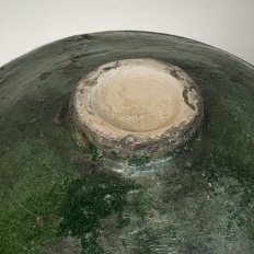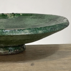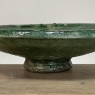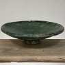 Antique Rustic Earthenware Centerpiece Bowl in Green Glaze