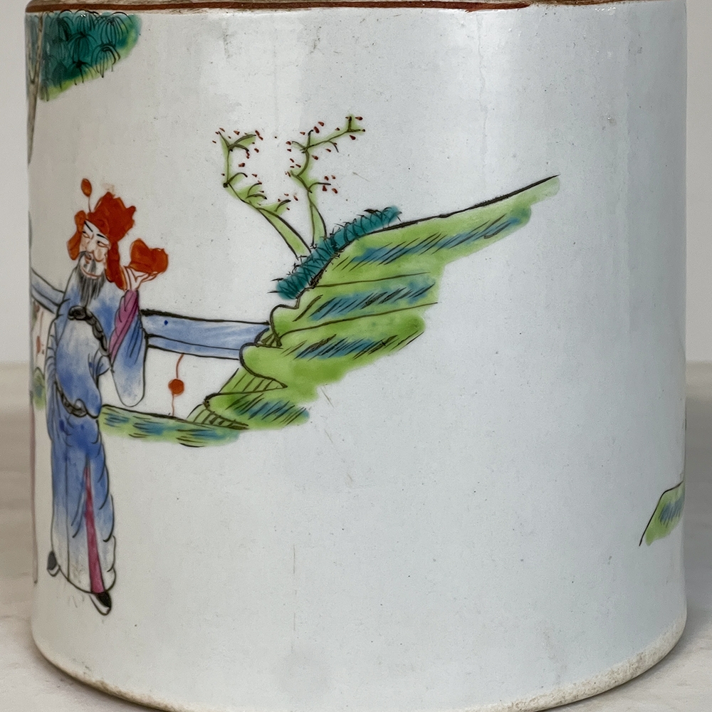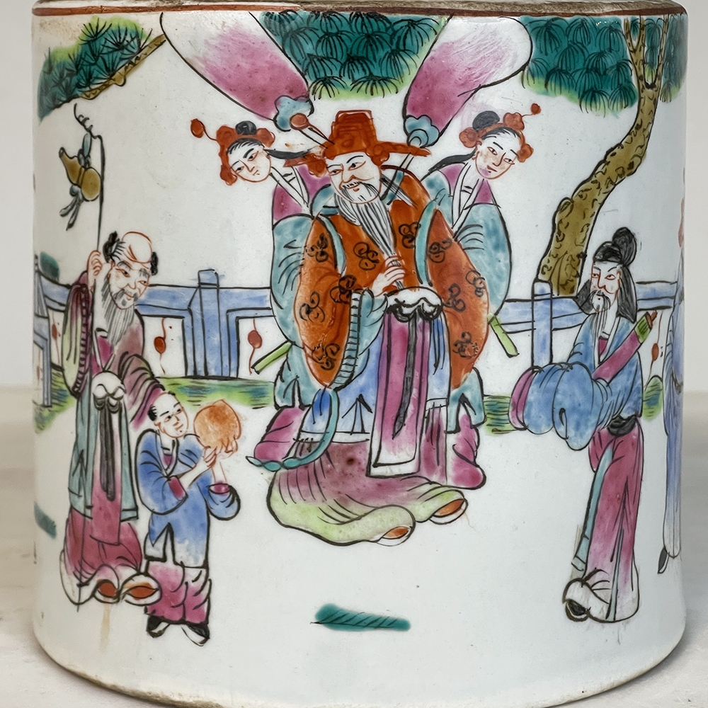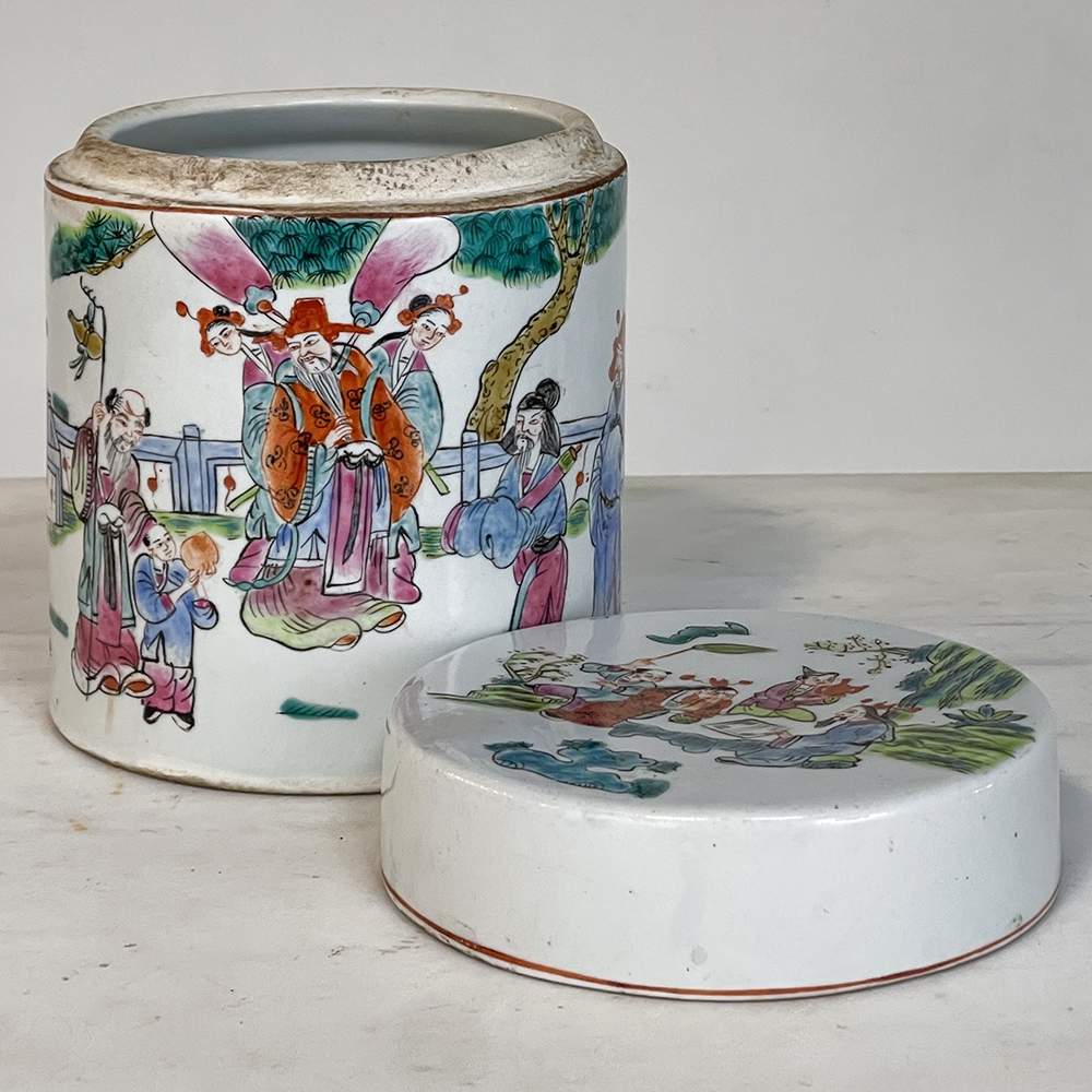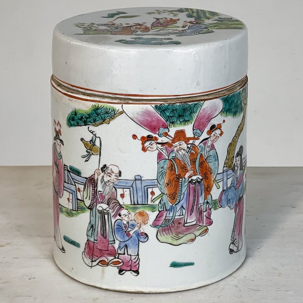 19th Century Oriental Porcelain Lidded Vase was shipped by arduous voyage around the Cape of Good Hope to feed the craze for all things from the Exotic Far East during the 18th & 19th Centuries in Europe. This example of Japanese craftsmanship depicts a formal encounter, depicted in a colorful rendition entirely by hand.