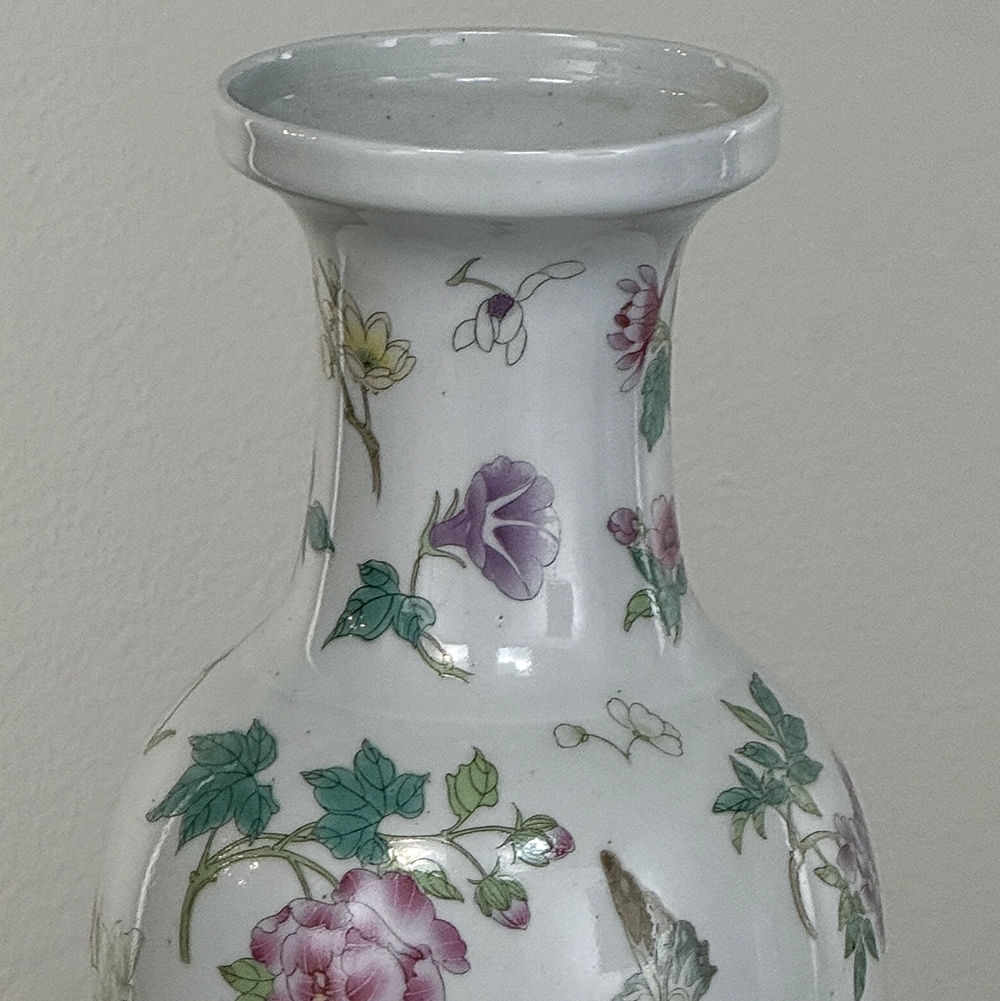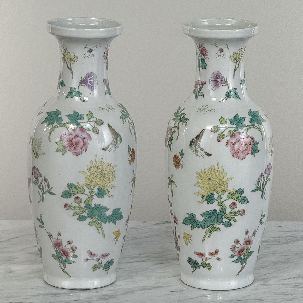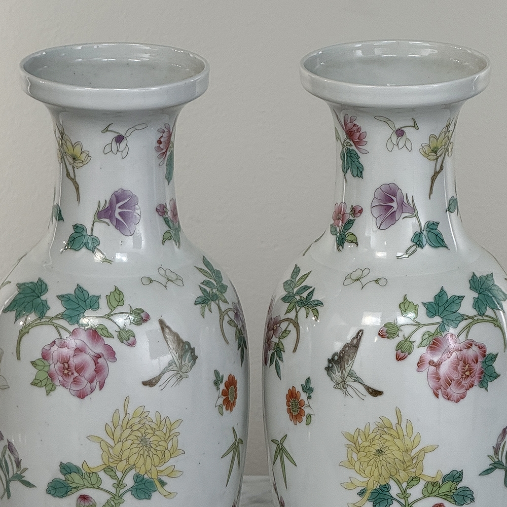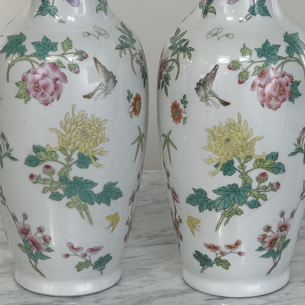 Pair Antique Chinese Hand-Painted Porcelain Bud Vases