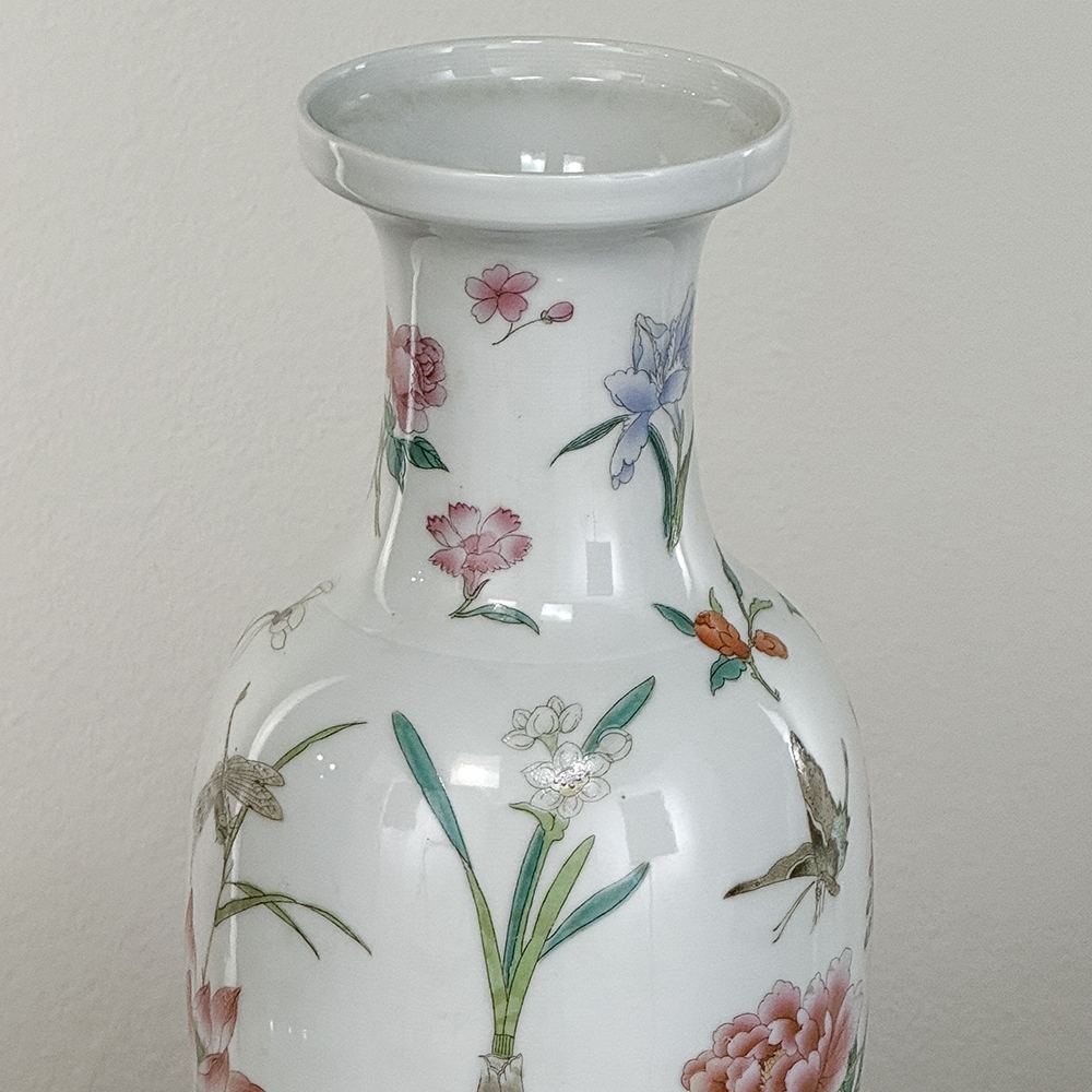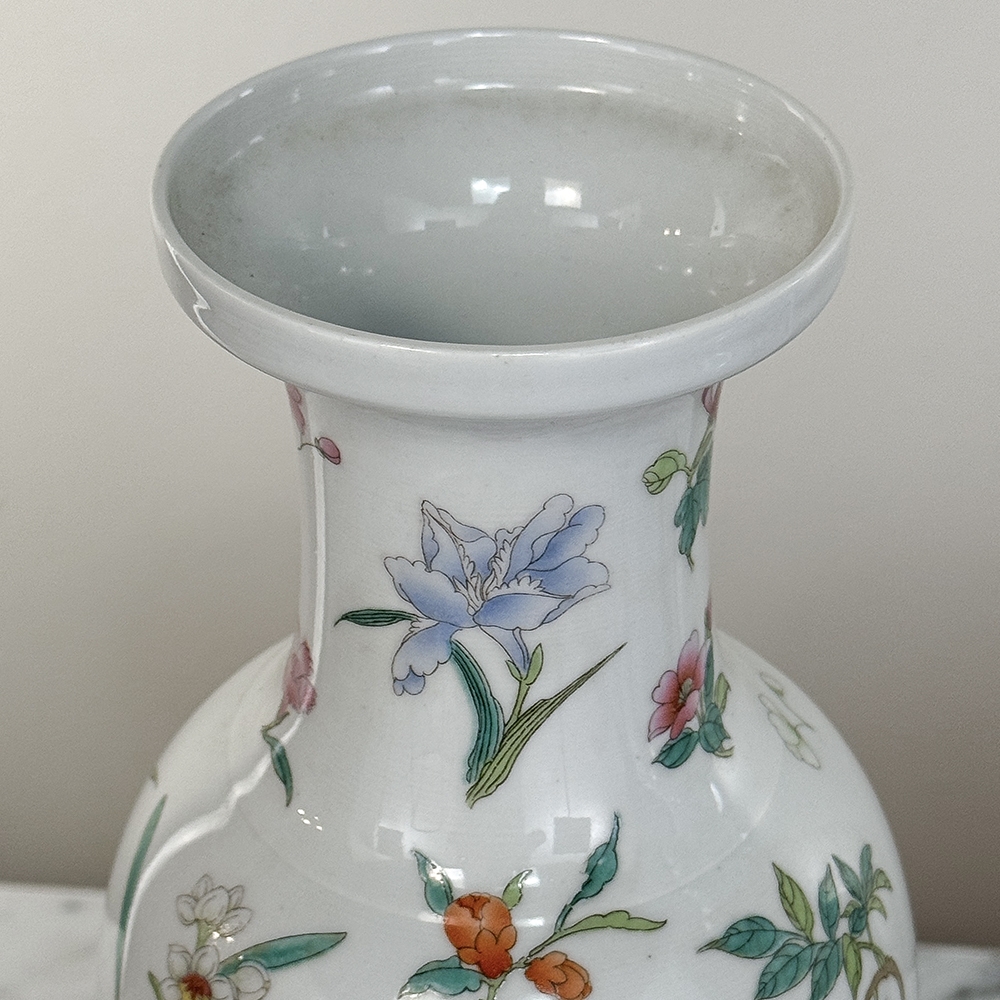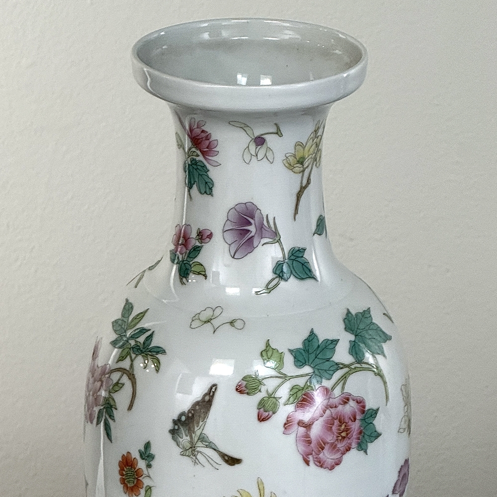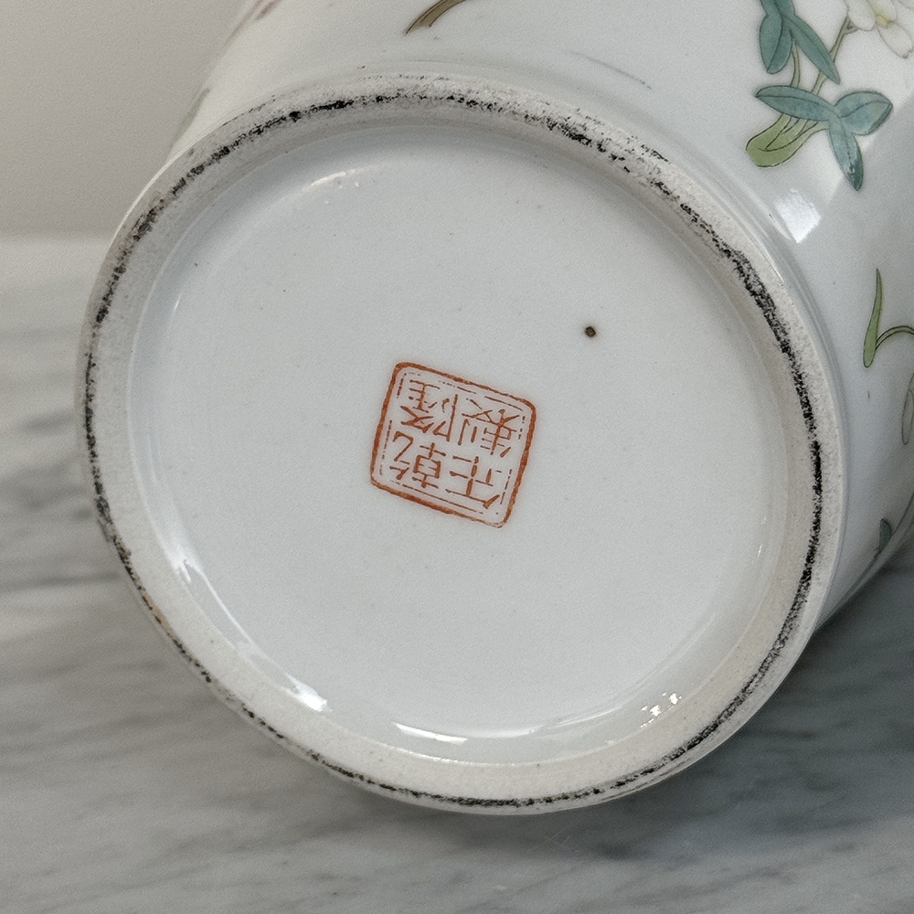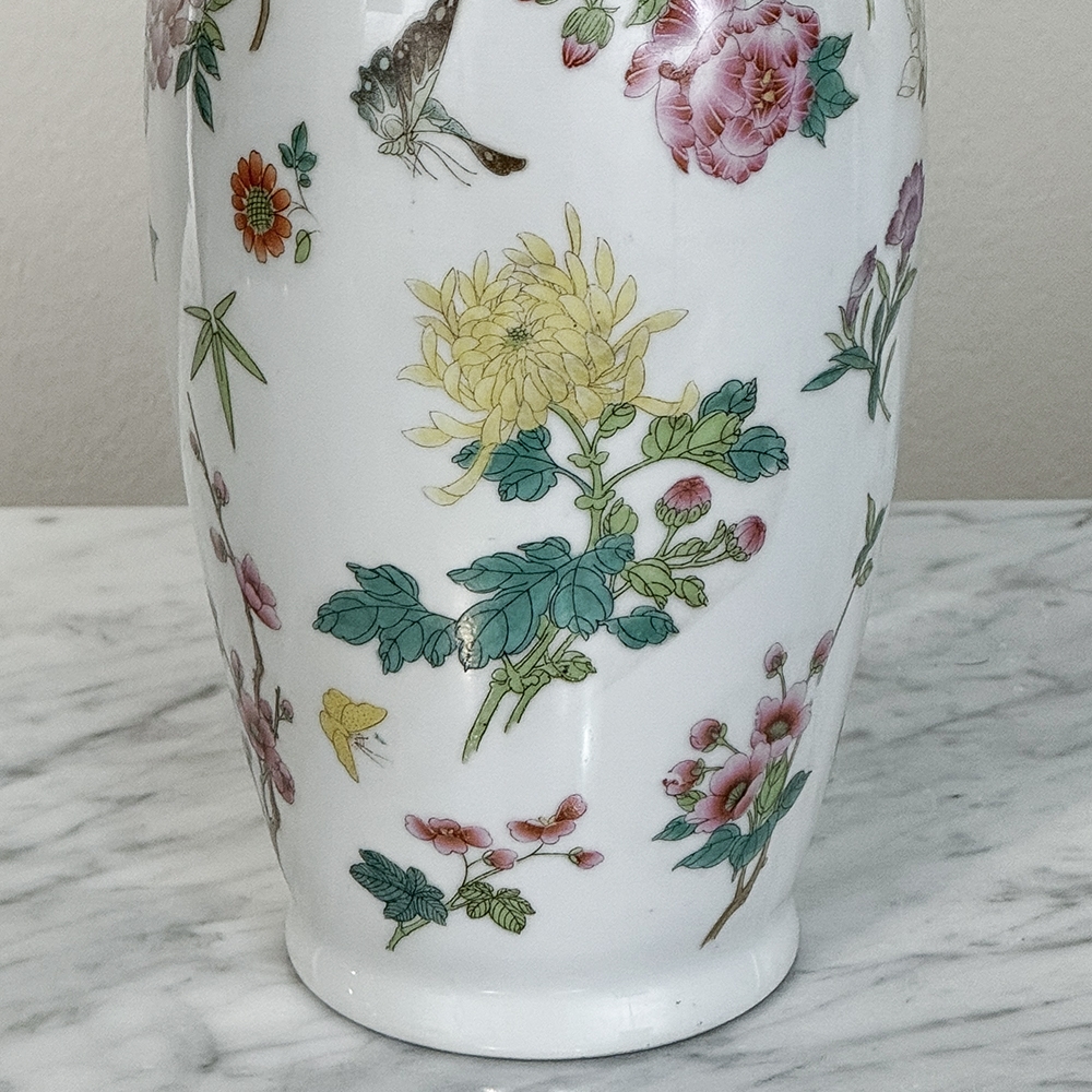 Pair Antique Chinese Hand-Painted Porcelain Bud Vases