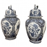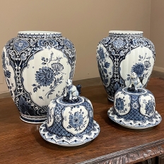 Pair Antique Delft Lidded Urns by Boch of Belgium