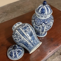 Pair Antique Delft Lidded Urns by Boch of Holland