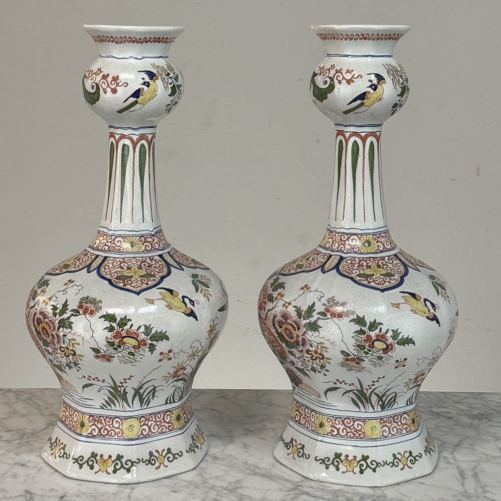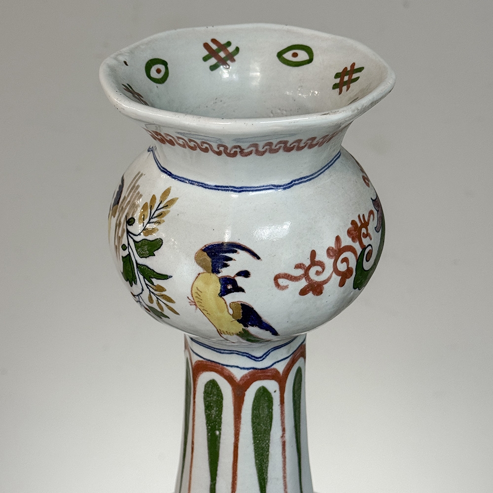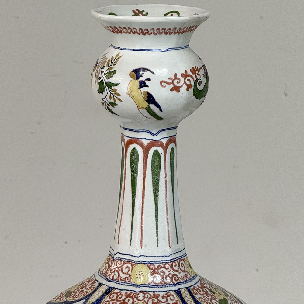 Pair of Large Boch Frères Keramis Polychrome Faience Vases is beautiful and distinctive, offering a lively and refined interpretation of traditional European ceramic decoration. The surfaces are richly adorned with birds, flowering branches, and scrolling ornament, all executed with a confident hand and a clear sense of balance.