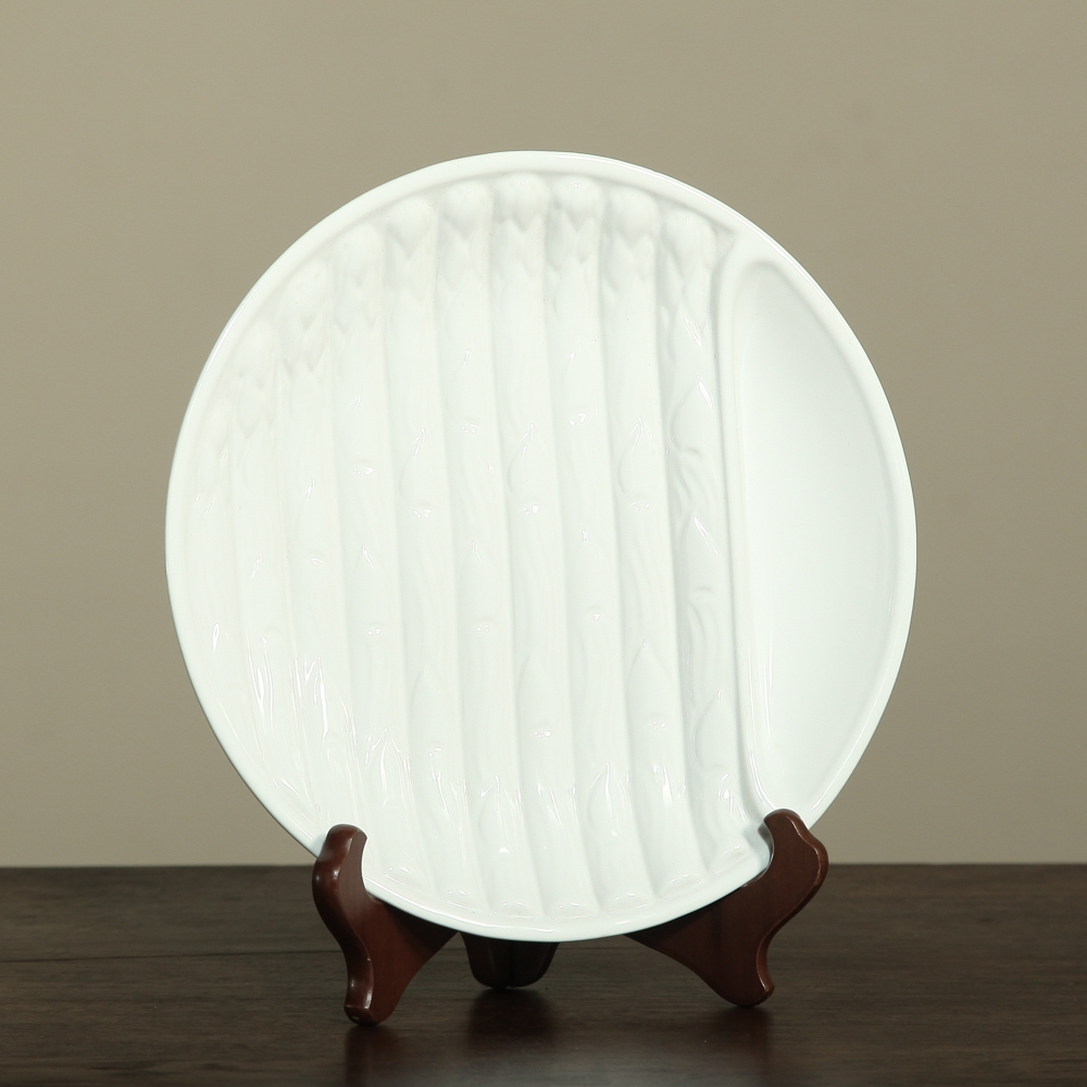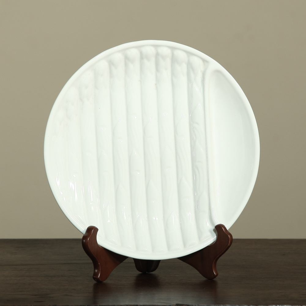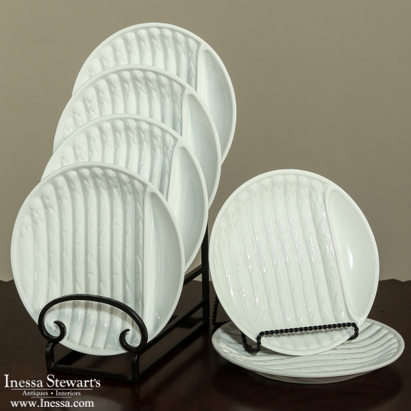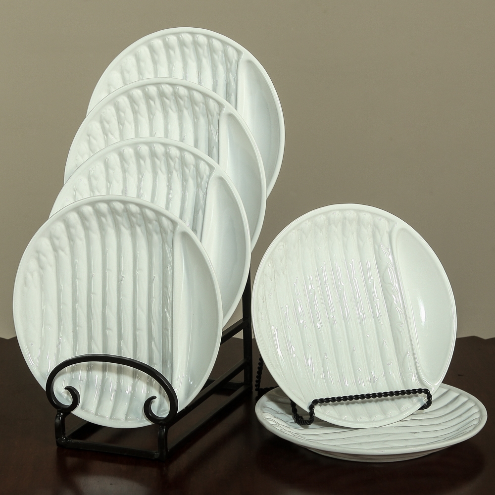 Set Of Six French White Ironstone Asparagus Plates