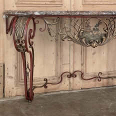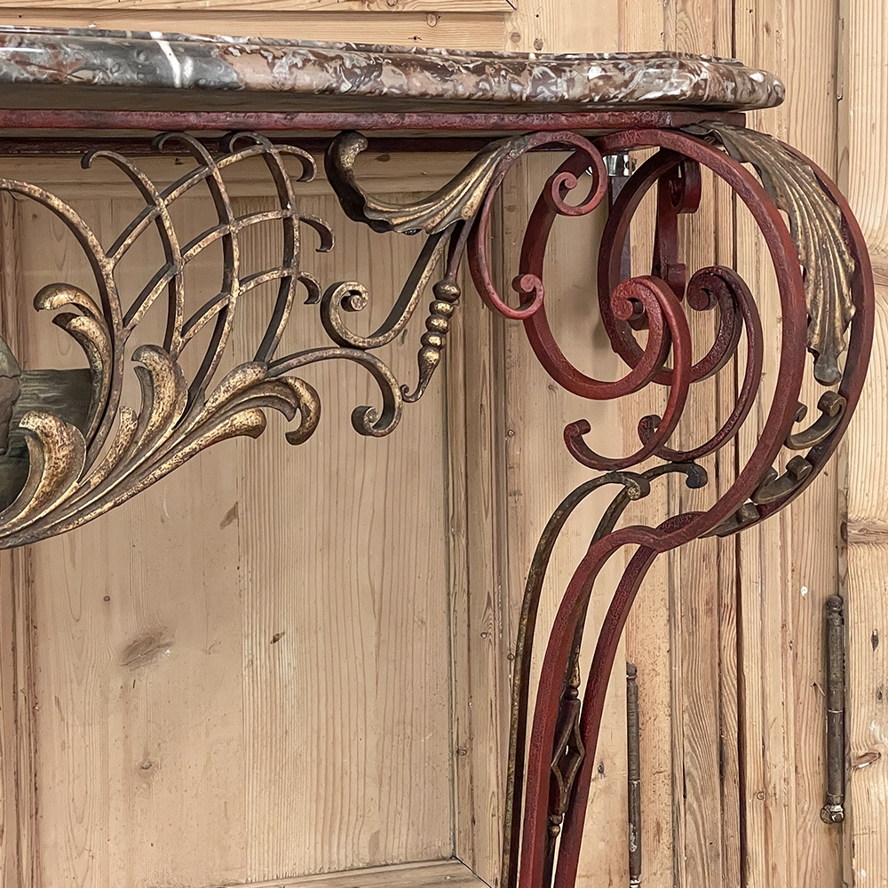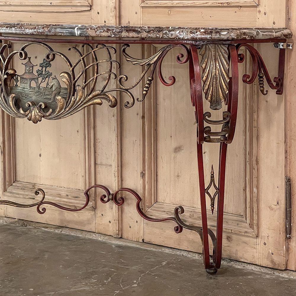 19th Century French Louis XIV Chinoiserie Wrought Iron & Marble Console