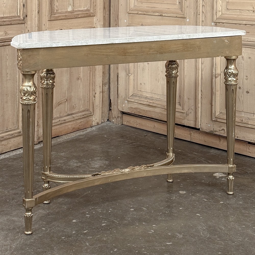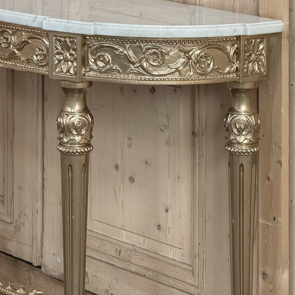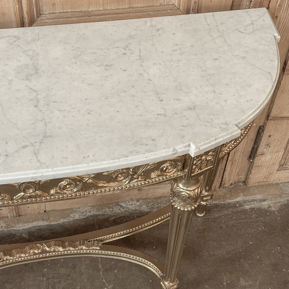 Antique French Louis XVI Giltwood Demilune Console with Carrara Marble