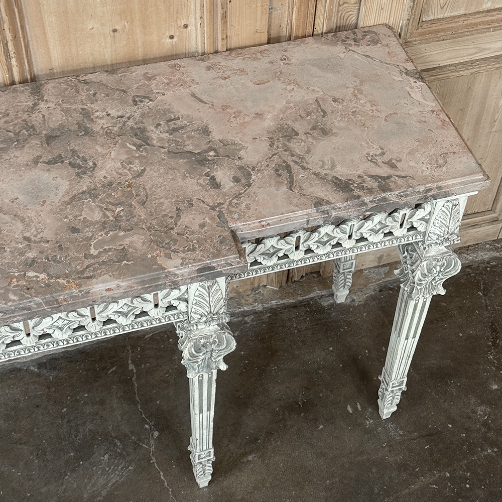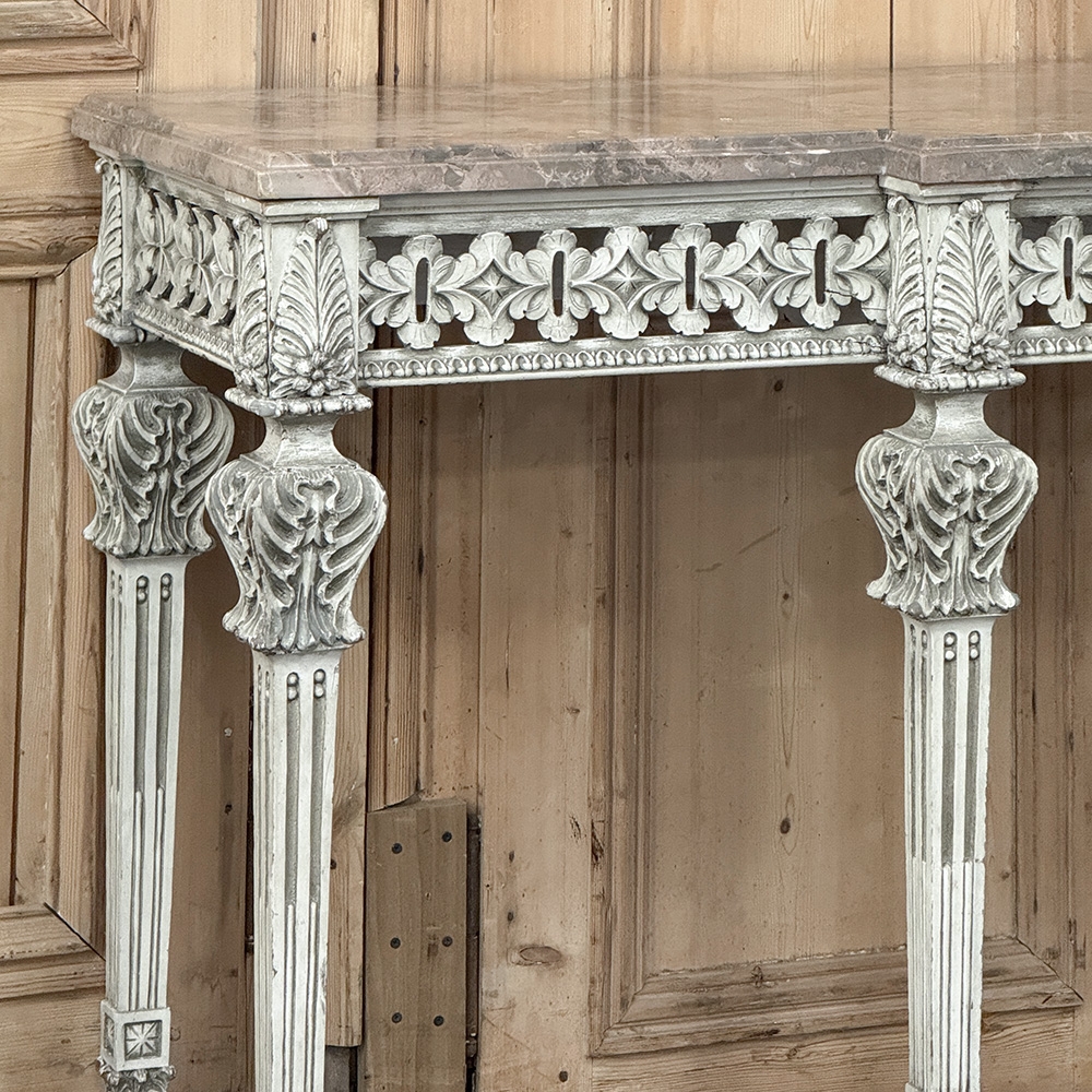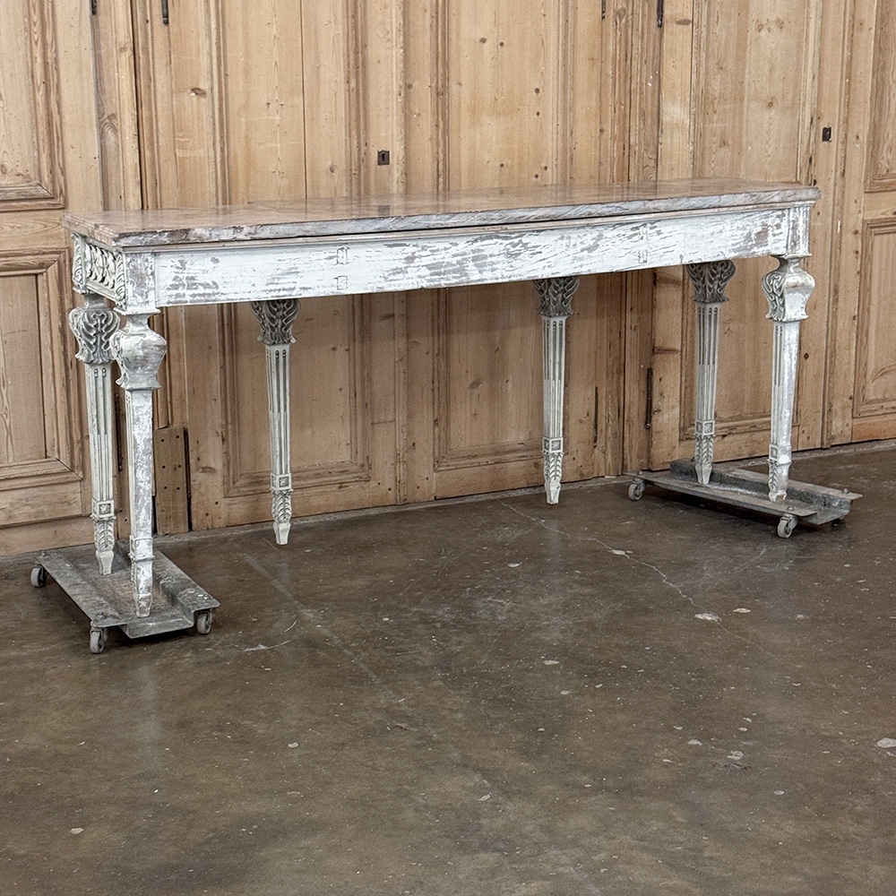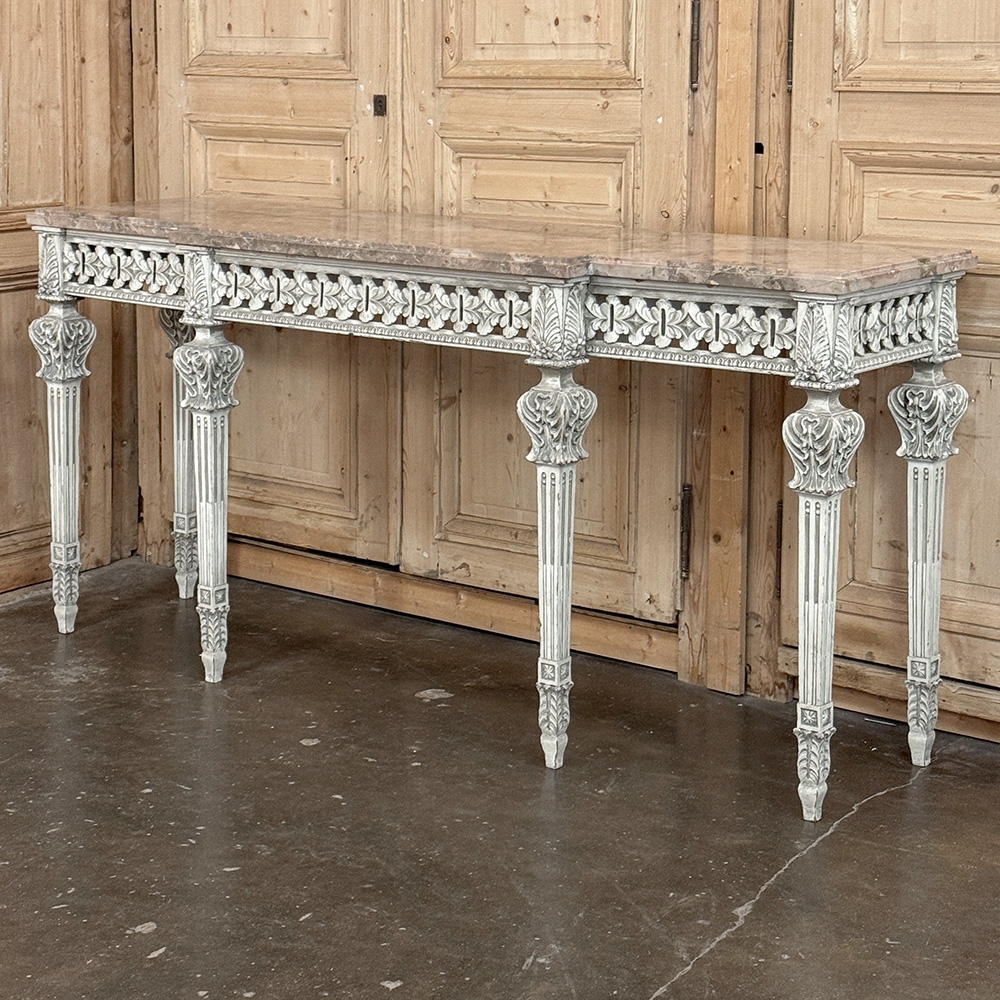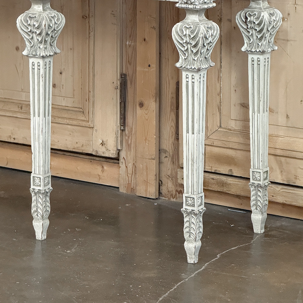 Grand Neoclassical Italian Painted and Carved Wood Console with Marble Top ~ Louis XVI Style