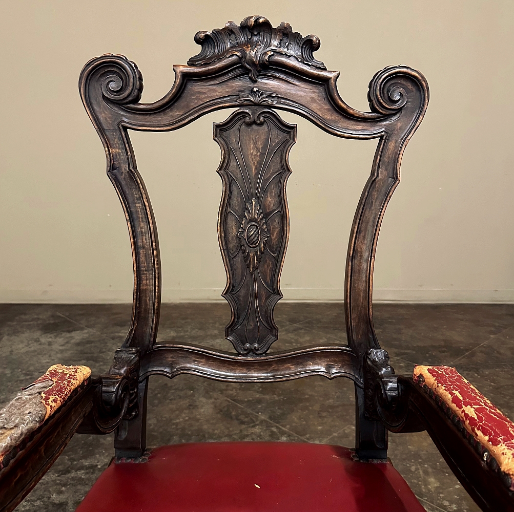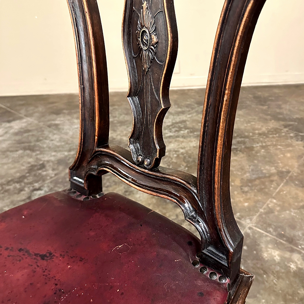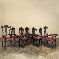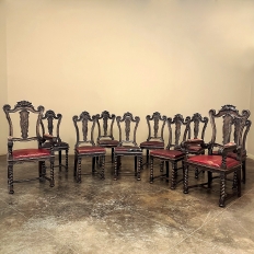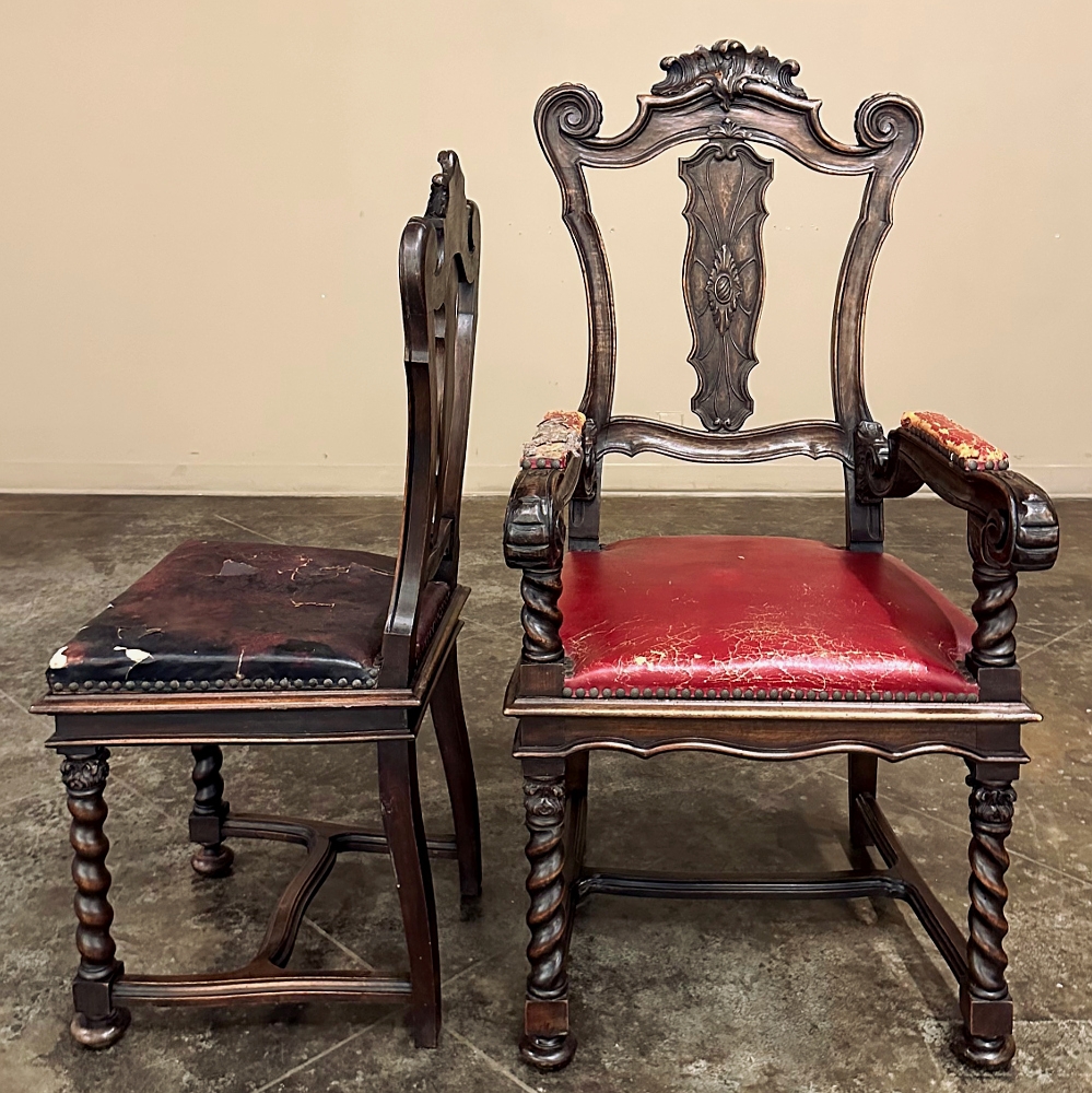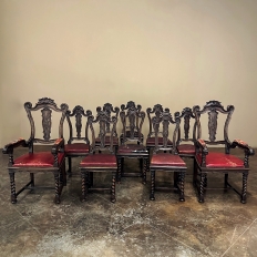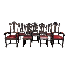 Set of 10 Antique Italian Walnut Baroque Dining Chairs includes 2 Armchairs
