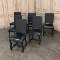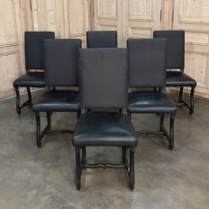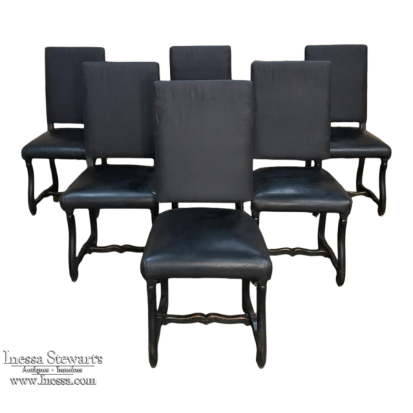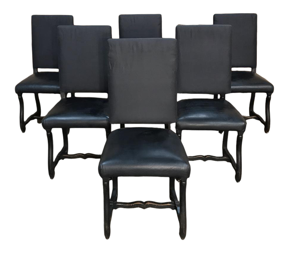 Set of 6 Antique French Os de Mouton Dining Chairs with Faux Leather