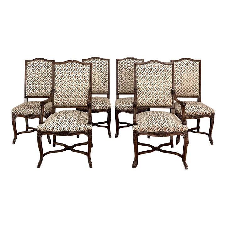 Set of 6 Antique French Regence Dining Chairs includes 2 Armchairs