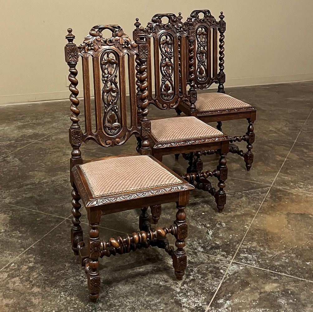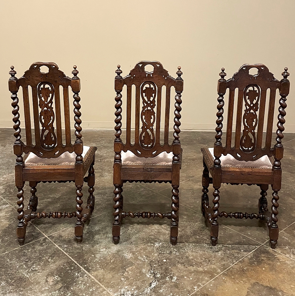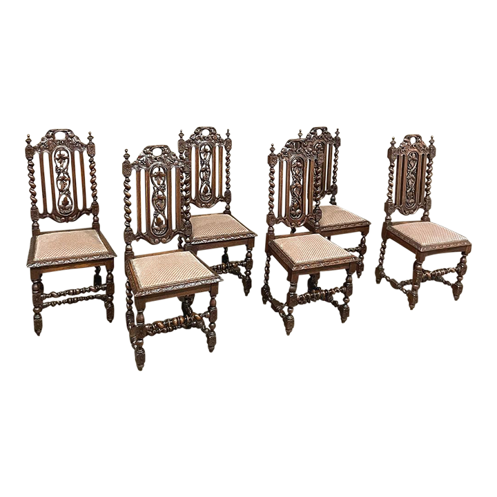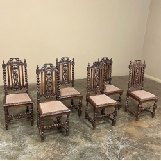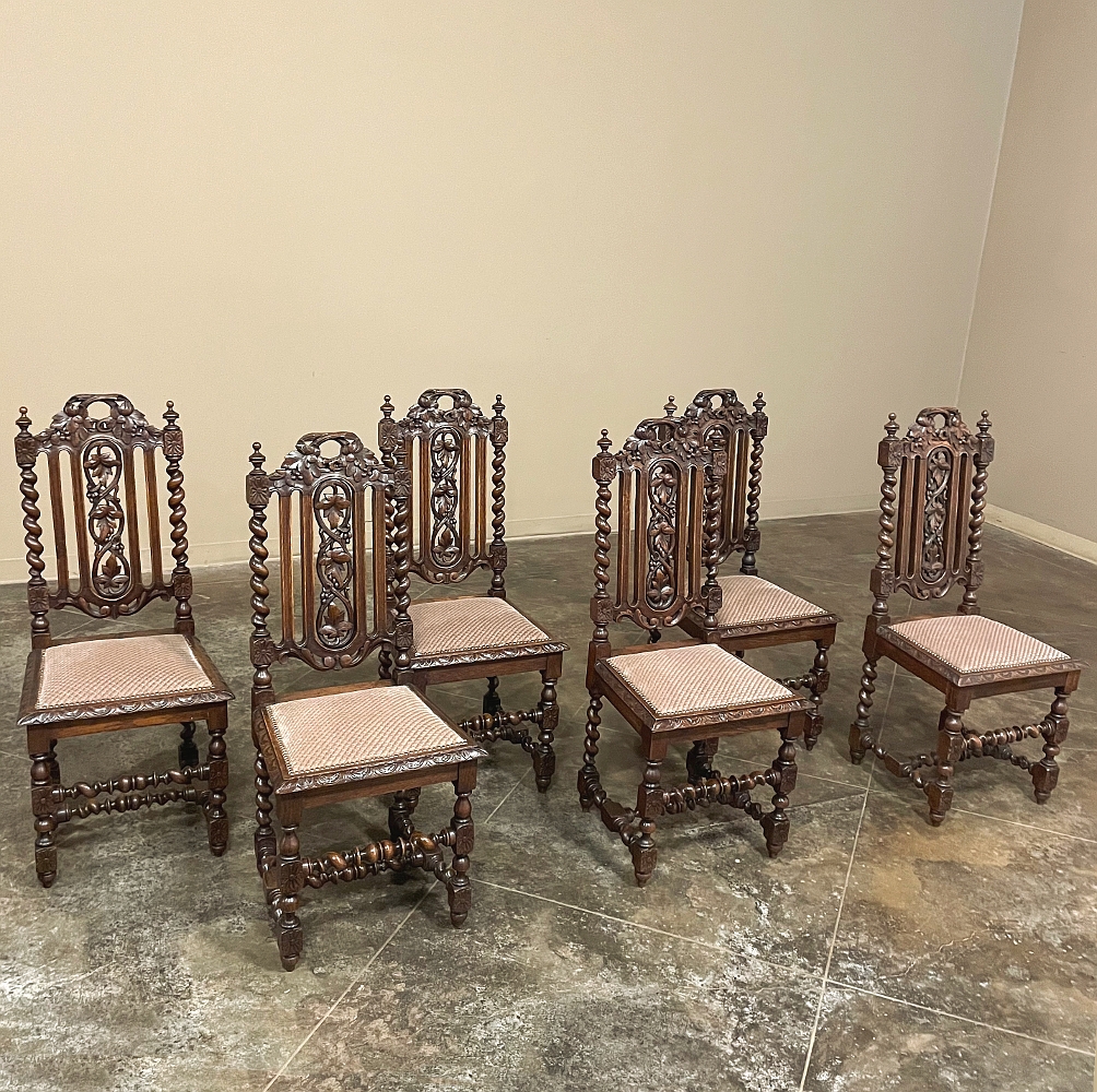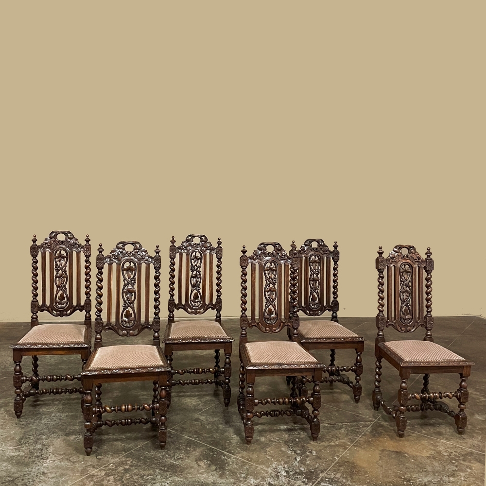 Set of 6 Antique French Renaissance Barley Twist Dining Chairs