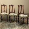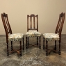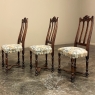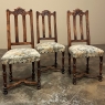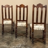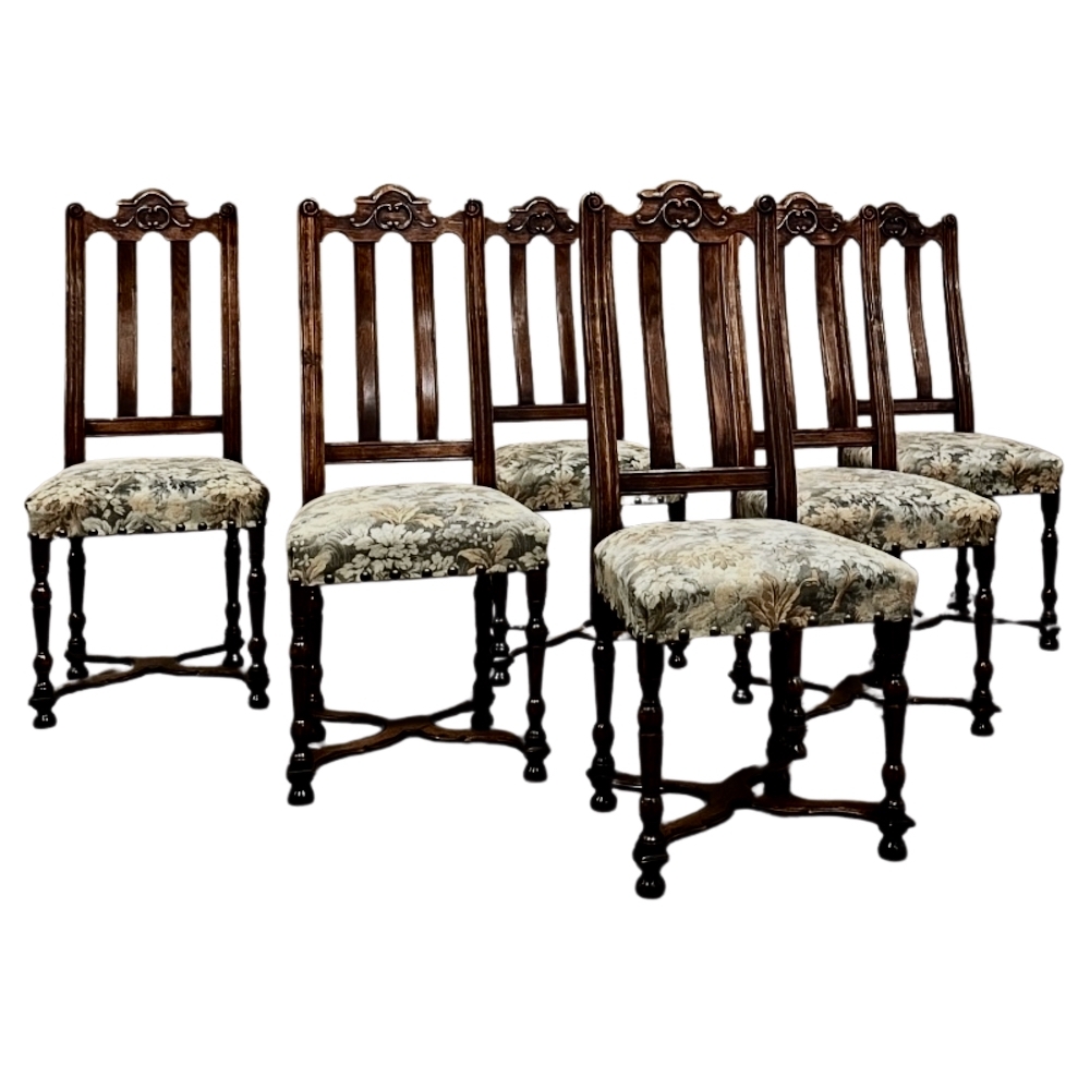 SaleSet of 6 Antique Liegoise Louis XIV Dining Chairs combine timeless styling with expert craftsmanship and surprising comfort, all in one! The ergonomically shaped seat backs were made with vertical slats and contoured to fit the human form beautifully. The generous seats are fully upholstered in durable tapestry fabric for comfort and long wearing properties. Support is provided by four tapered and faceted legs connected with double lyre stretchers for stylish reinforcement, with bun feet to complete the look.