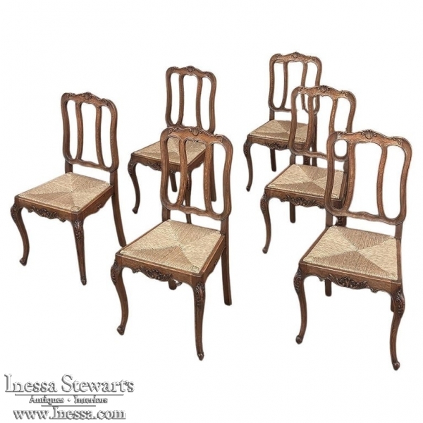 Set of 6 Country French Dining Chairs with Rush Seats