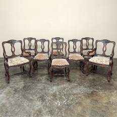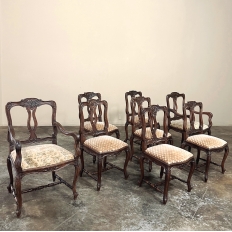 Set of 8 Antique Country French Upholstered Dining Chairs includes 2 Armchairs