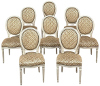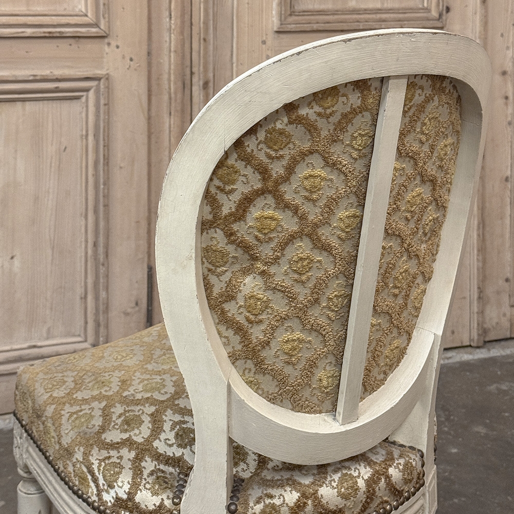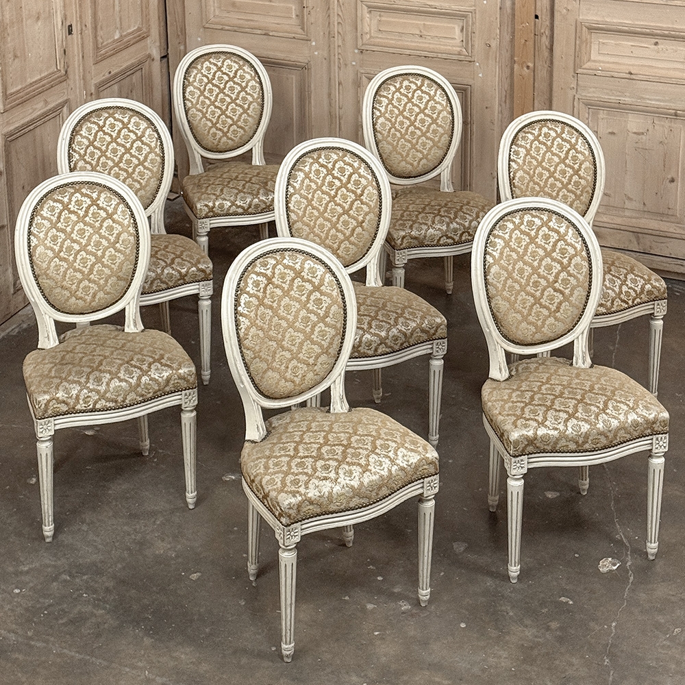Set of 8 Antique French Louis XVI Painted Dining Chairs with Damascene Upholstery