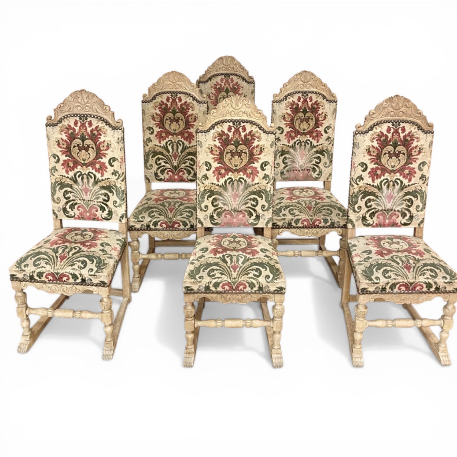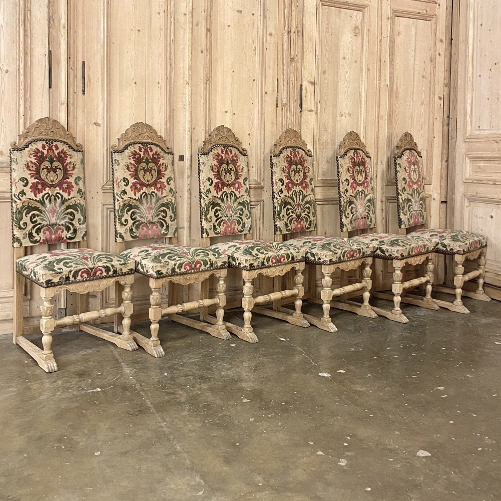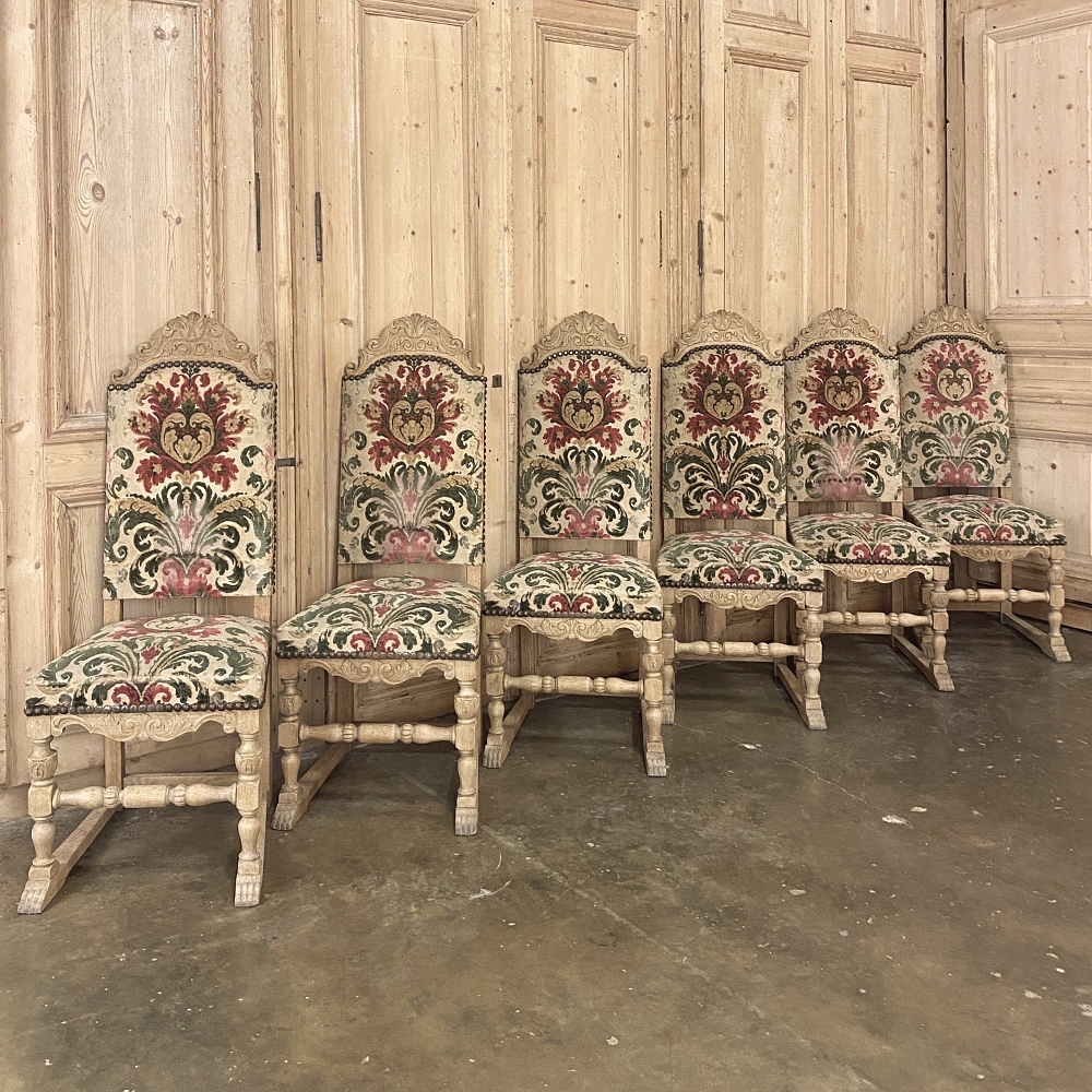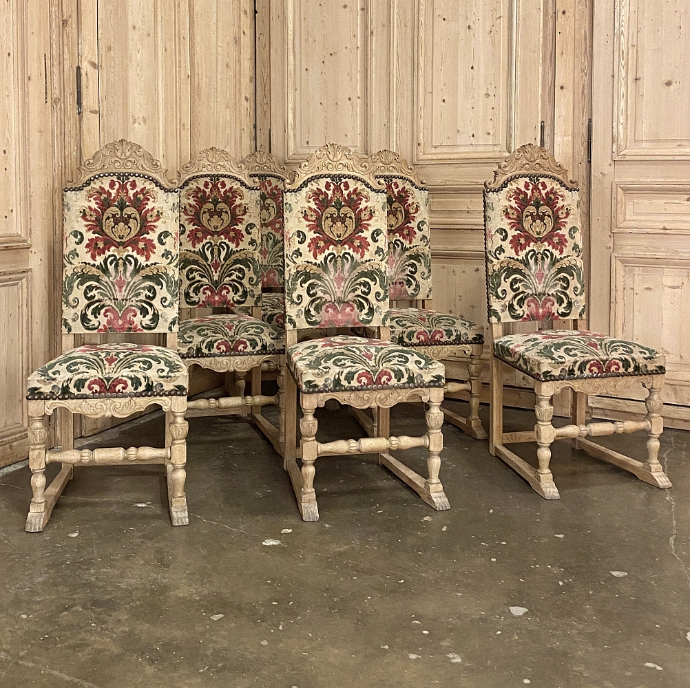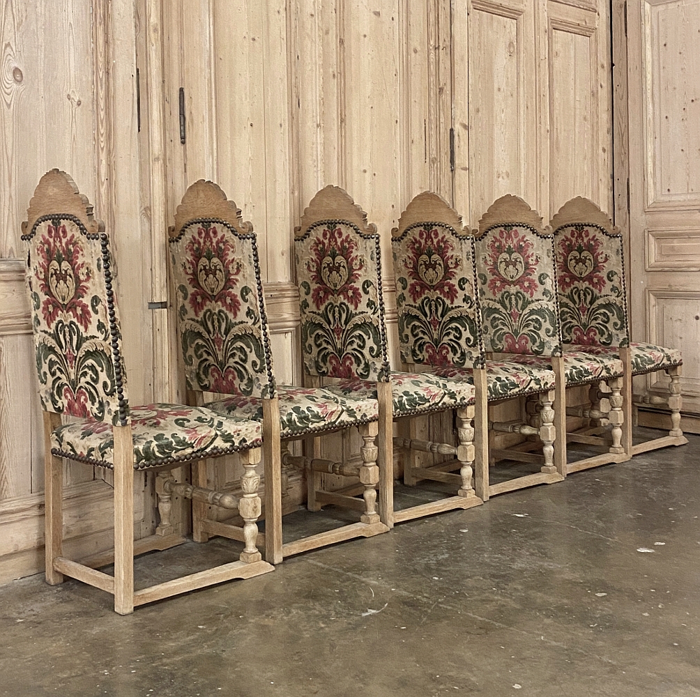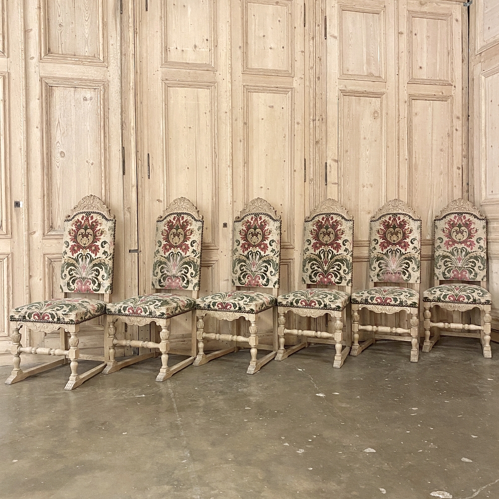 SaleThis set of six Renaissance Revival dining chairs features the bold lines and carved detail that give the style its enduring appeal. The tall backs are crowned with sculpted cresting, creating a strong architectural silhouette, while the carved seat rails and turned stretchers reflect the solid craftsmanship behind the design.