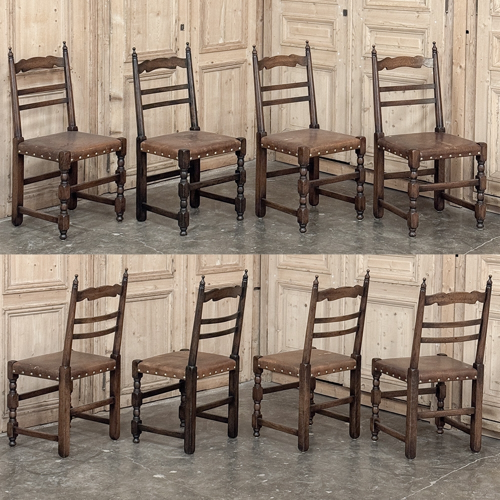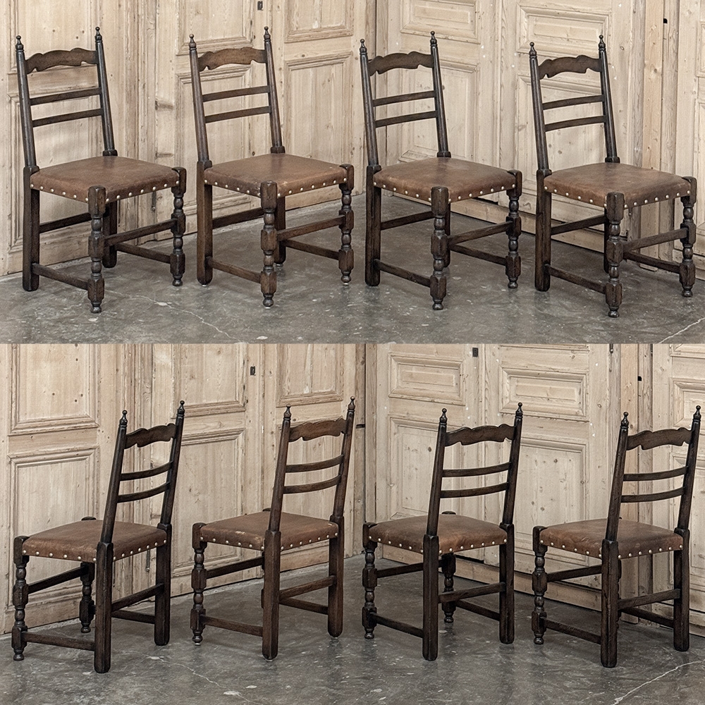 Country French warmth and enduring craftsmanship define this substantial set of ten dining chairs, executed in solid oak in the Country Louis XIII style. Inspired by the 17th-century French tradition, this style is celebrated for its confident turnings, grounded proportions, and architectural integrity—qualities beautifully expressed throughout the set.