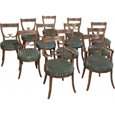 Set of Twelve 18th Century Swedish Gustavian Dining Chairs includes 2 Armchairs