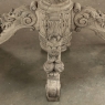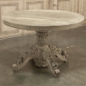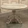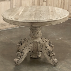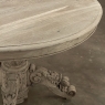 19th Century French Renaissance Oval Center Table ~ Dining Table in Stripped Oak makes an unforgettable style statement while exuding a softened appearance thanks to our proprietary stripping process that leaves the natural color and patina of the century-old wood. The solid plank top is supported by a tailored, subtly edged apron all around, and the entire top is supported by a central pedestal carved with acanthus plumes and rosettes and fitted with four elaborately carved legs. The legs depict lions with the bounty of the earth spewing forth from their open mouths, transitioning to richly scrolled tip. The carving as well as the intrinsic beauty of the wood have all been wonderfully preserved for you and your family to enjoy for decades to come.