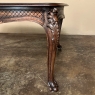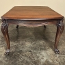 Antique French Louis XIV Walnut Dining Table with 2 Leaves combines elegance with versatility creating a table your family will enjoy for generations! Hand-crafted from sumptuous French walnut, it features rounded and wide ends with sides that boast beautifully carved aprons with stylized shell, foliates and cross hatching. Cross hatching also appears on the aforementioned ends for continuity. Support is provided by four hefty but elegant cabriole legs, each carved with a shell-inspired crest with bell flowers and foliates, leading the eye down to the lion's paw feet. Table splits open at the middle to accommodate one or two leaves, both included with the table, making it just shy of eight feet wide when the whole family arrives!