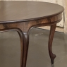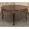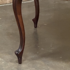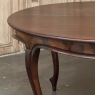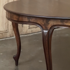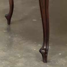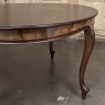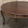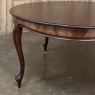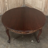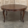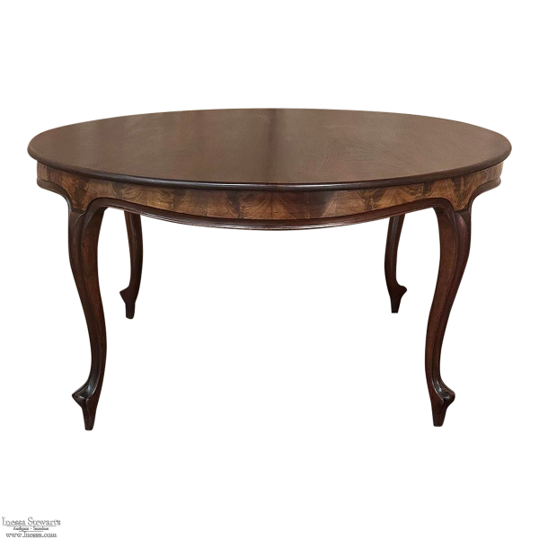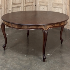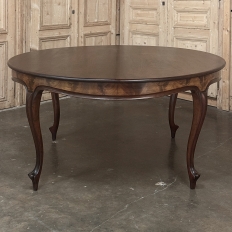 SaleAntique French Louis XV Mahogany Round Dining Table is the definition of elegant, intimate entertaining! Solid mahogany construction on the entire top combines with solid, cabriole shaped legs and a subtly contoured apron all around adorned with flame mahogany veneering to create a truly opulent effect. The tailored design is indeed sculpted, but its creators did not add carved embellishments creating clean, uncluttered lines. The club foot style below is designed to provide maximum knee room for your dining comfort.