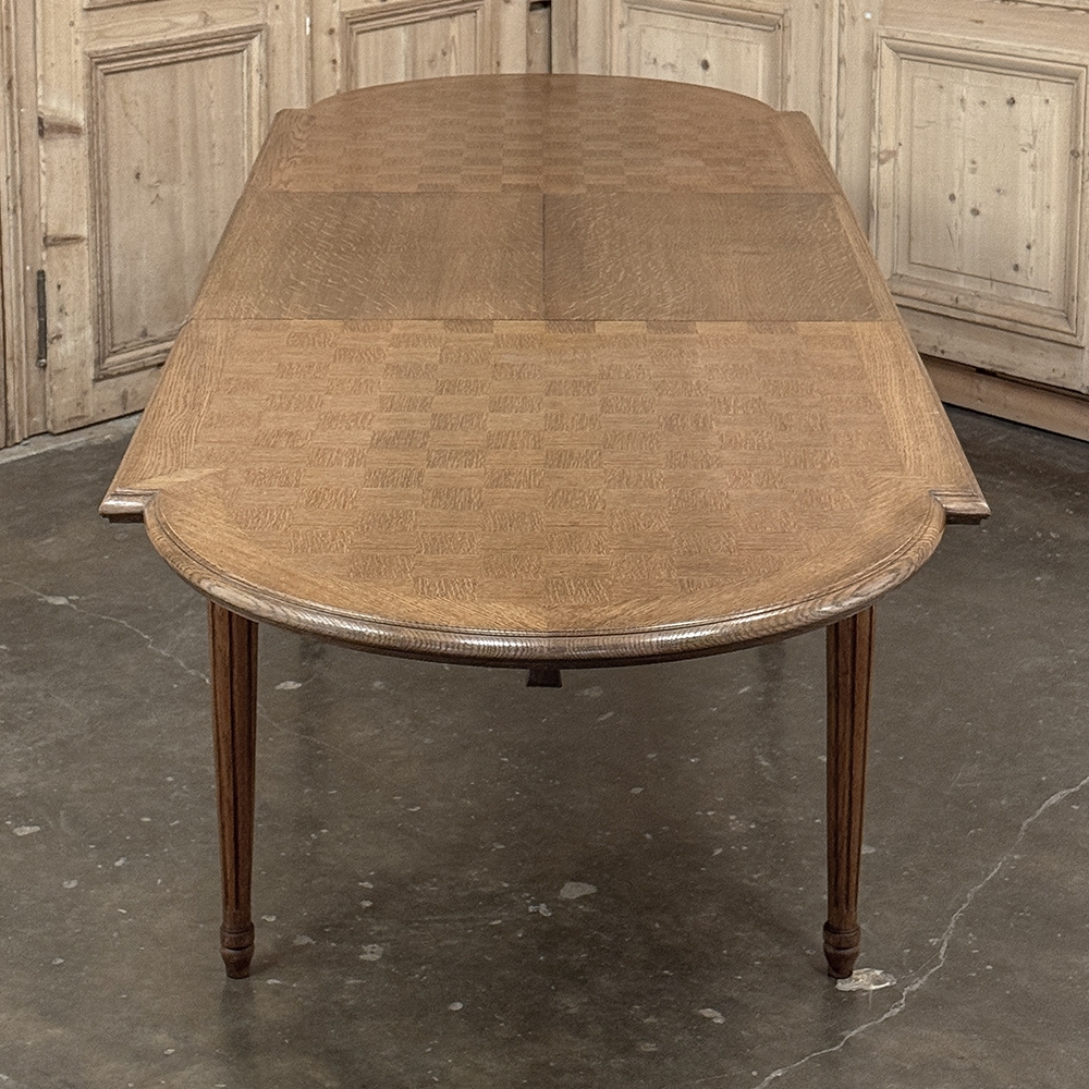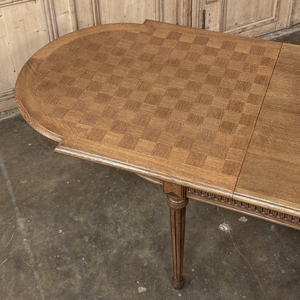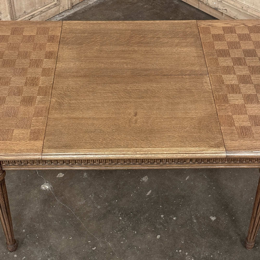 Antique French Louis XVI Oak Parquet Dining Table with Pop-Up Leaf