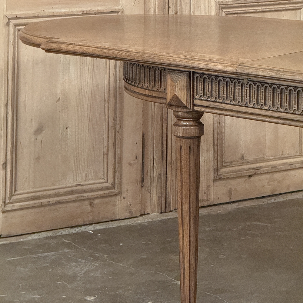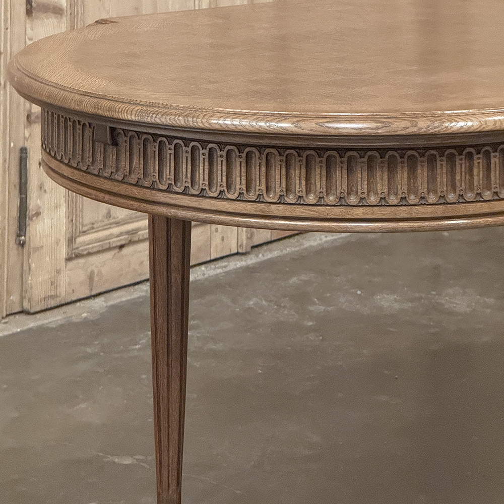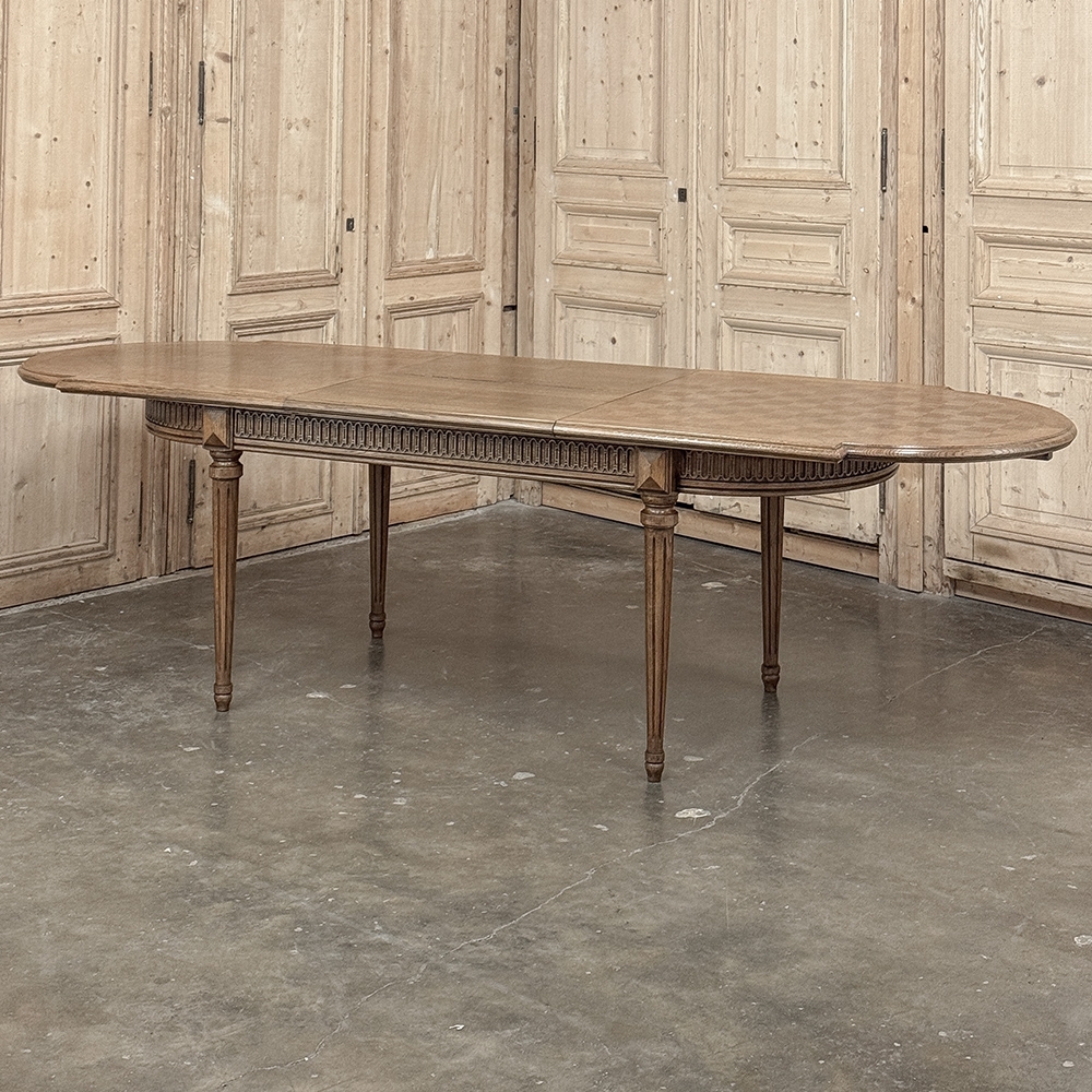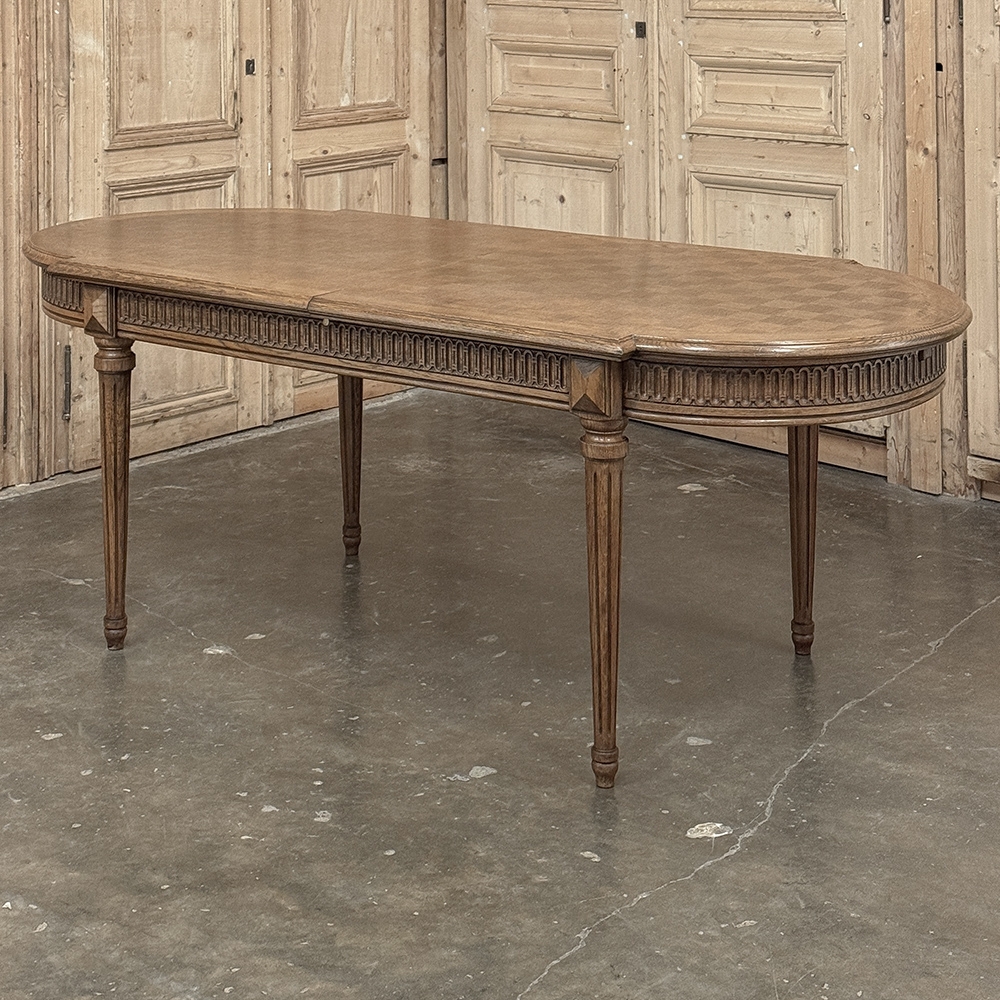 Antique French Louis XVI Oak Parquet Dining Table with Pop-Up Leaf