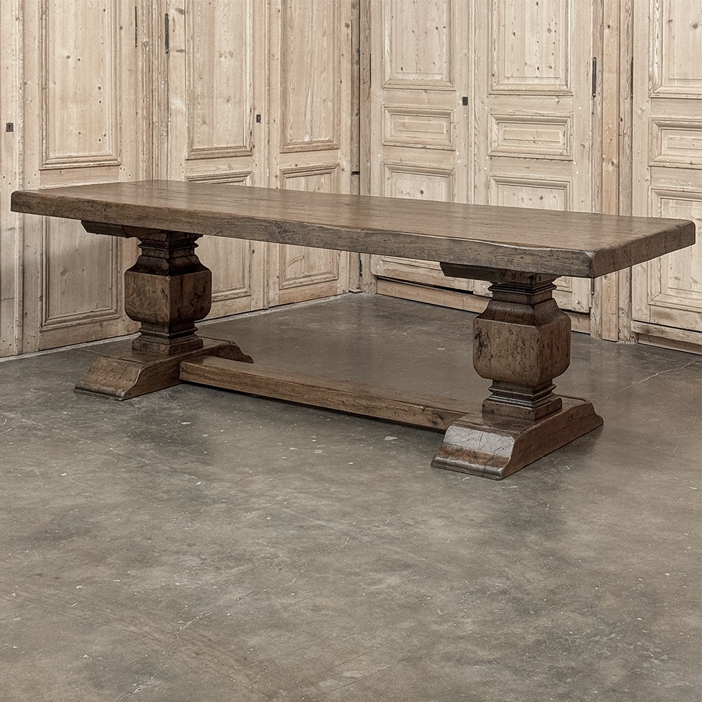 Antique Rustic European Double Pedestal Trestle Dining Table