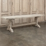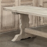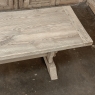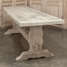 Antique Rustic Stripped Sycamore Trestle Dining Table was literally designed to last for centuries! Hand-crafted from thick, solid planks of old-growth sycamore, it features a top so sturdy a supporting apron is unnecessary, maximizing knee room below. The plank top is upheld by two massive end supports each cut with graceful scrolled edges, mating with a scrolled foot structure on the floor at each end, while providing overhang on the ends for the lord and lady of the castle. The supports are connected with a shimmed fully mortised beam trestle for added strength and longevity ensuring your grandchildren will still be raising their families with this wonderful table in the distant future. Pegged mortise & tenon joinery was used in the traditions that date back centuries.