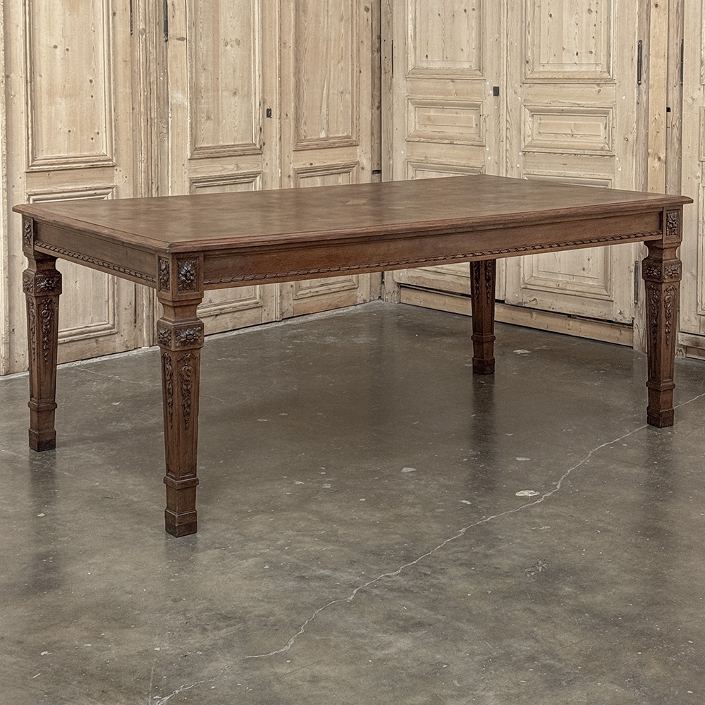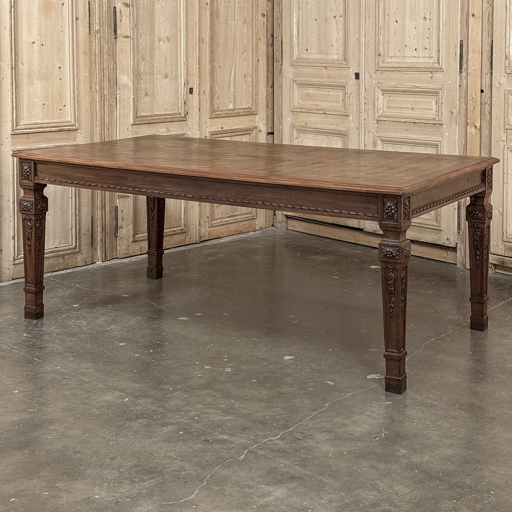 French Louis XVI Style Walnut Dining Table with Parquetry Top