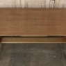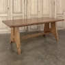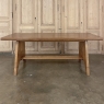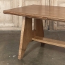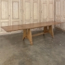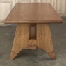 Mid-Century Grand Neogothic Rustic Draw Leaf Dining Table by DeCoene is ideal for a large space, a large family, and large parties! Hand-crafted from solid oak and left in a natural finish, it is over six and a half feet closed, but extends to over eleven and a half feet when both leaves are pulled out! The angular legs on each end provide sturdy support, and are strengthened by a connecting trestle shimmed into place. The ingenious design allows one to serve six very comfortably all year long, while allowing accommodations for 10 to 12 when it's party time! Leaves then tuck back in quickly and easily to regain floor space. The densely grained quarter-sawn oak will surely provide yeoman's service for decades, bringing smiles to generations to come. Crafted by the masters at De Coene of Cortrai, Belgium, it was literally designed to last for generations!