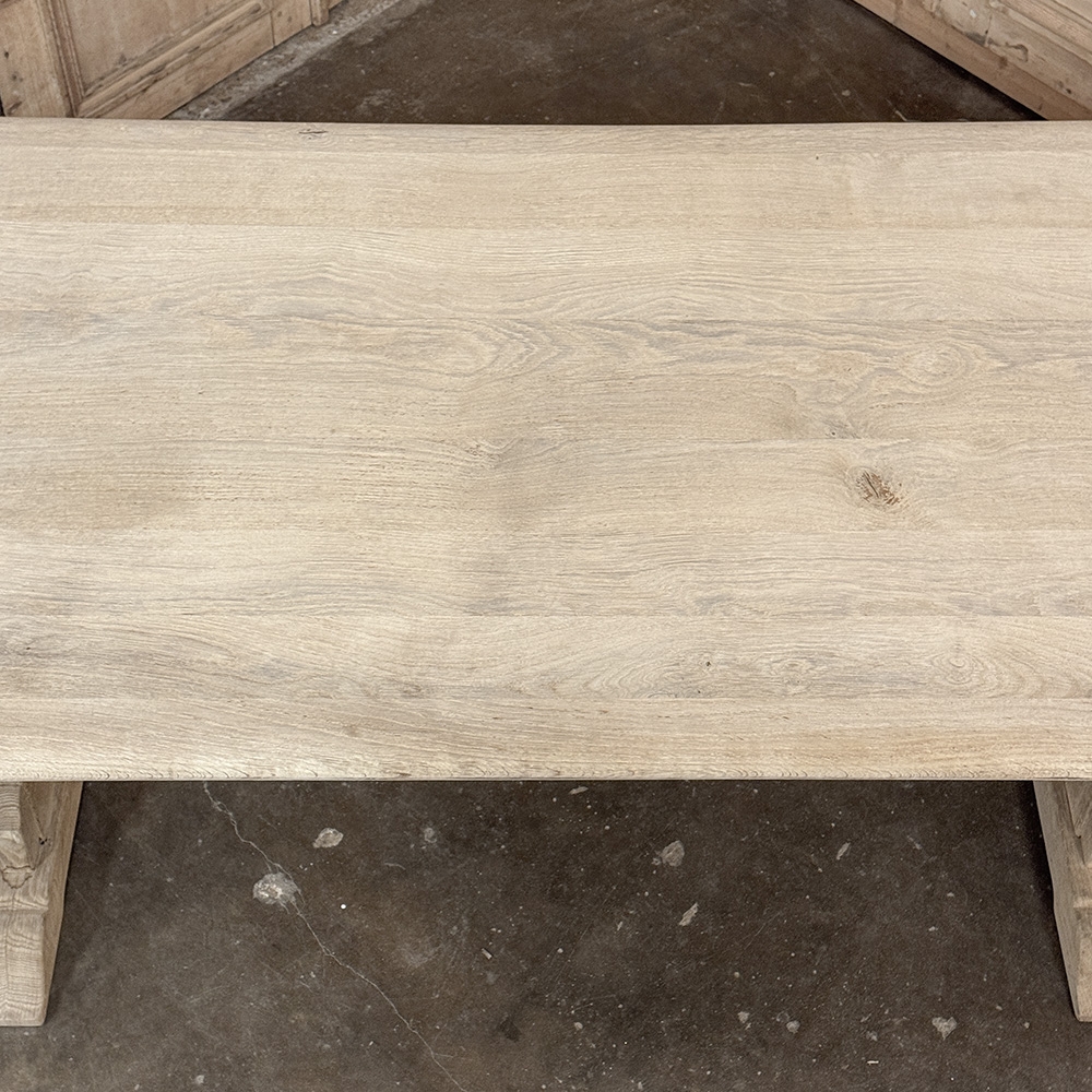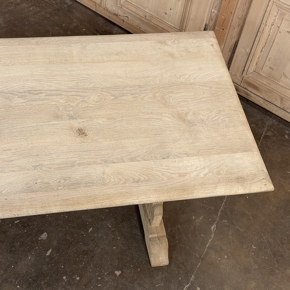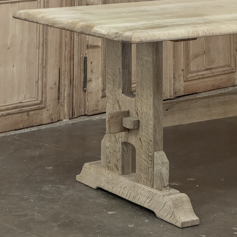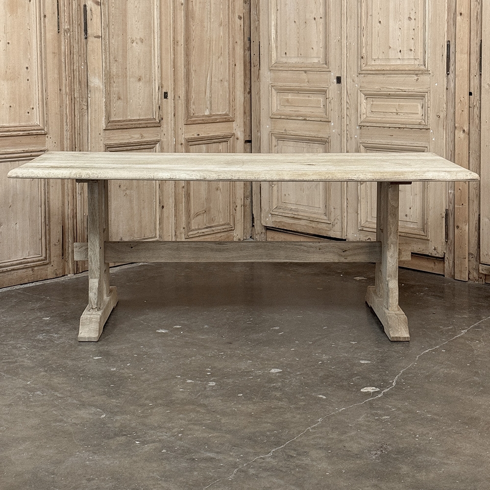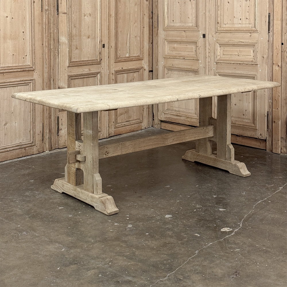 Vintage Rustic European Stripped Oak Trestle Dining Table