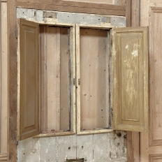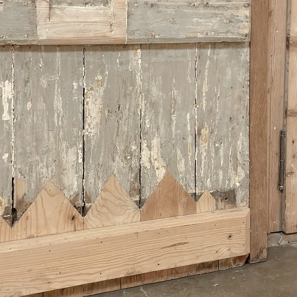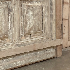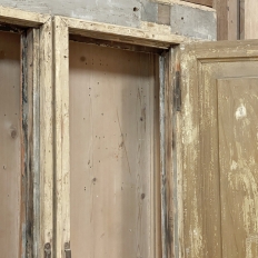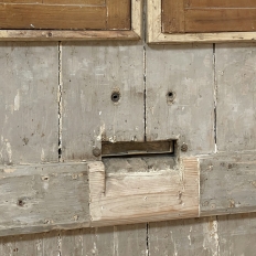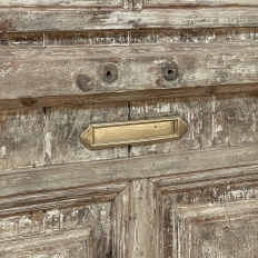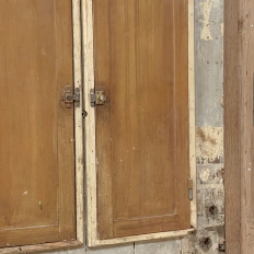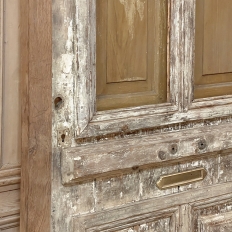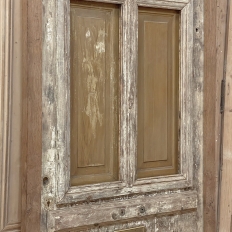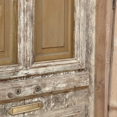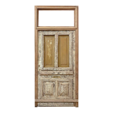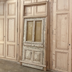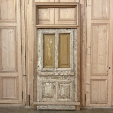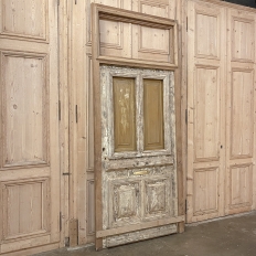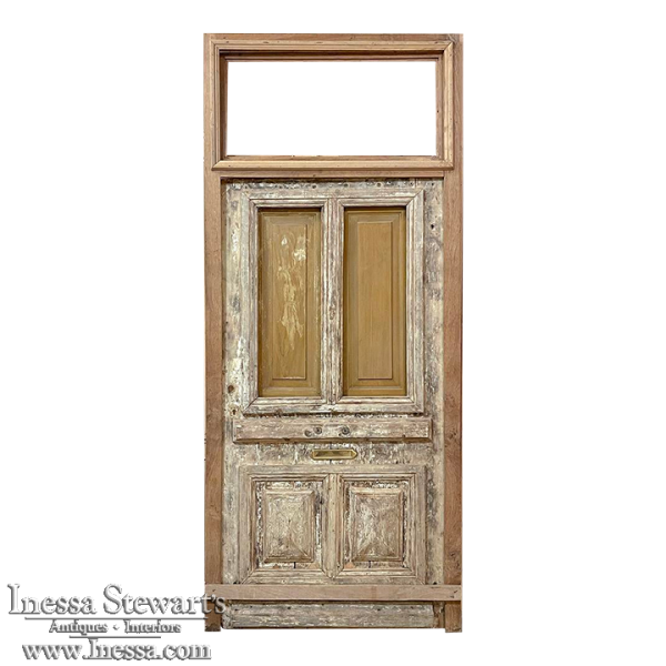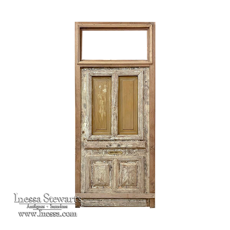 Sale19th Century Exterior Door in Original Jamb with Transom was hand-crafted from old-growth pine and oak to last for generations! Sporting the original solid oak jamb which includes a transom at top into which one can install glass, stained glass, or a privacy style panel, the frame encompasses an unusually wide door for this period, measuring over 39" wide just by itself, making it a great choice for modern building codes like ADA. The door design consists of two chamfered panels below, a reinforced center section with mail slot, and an upper pair of panels that can be glazed, but also are fitted with hinged door panels that allow privacy or one can let the light in as desired. Some of the distressed painted finish remains on the door should you wish to take advantage of the look, but it is easily completely stripped like the jamb and finished in stain or paint depending on your requirements.