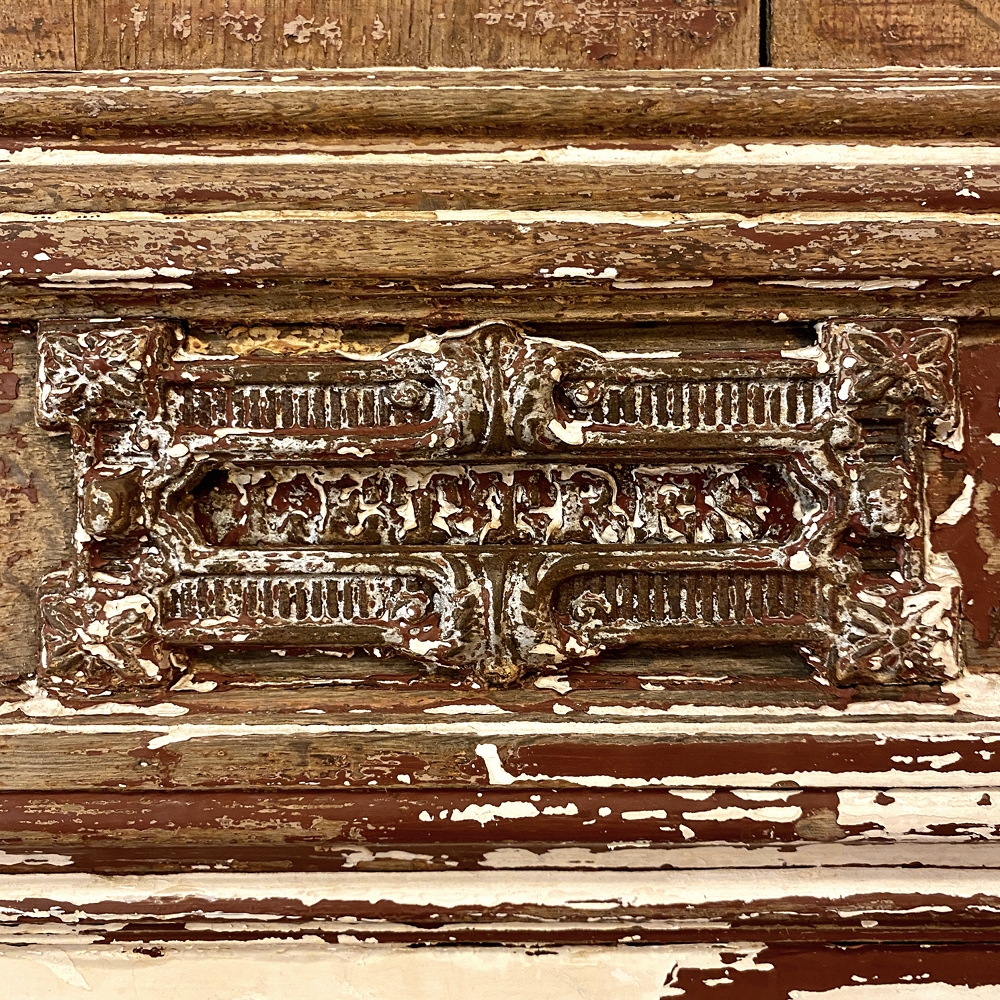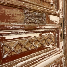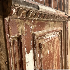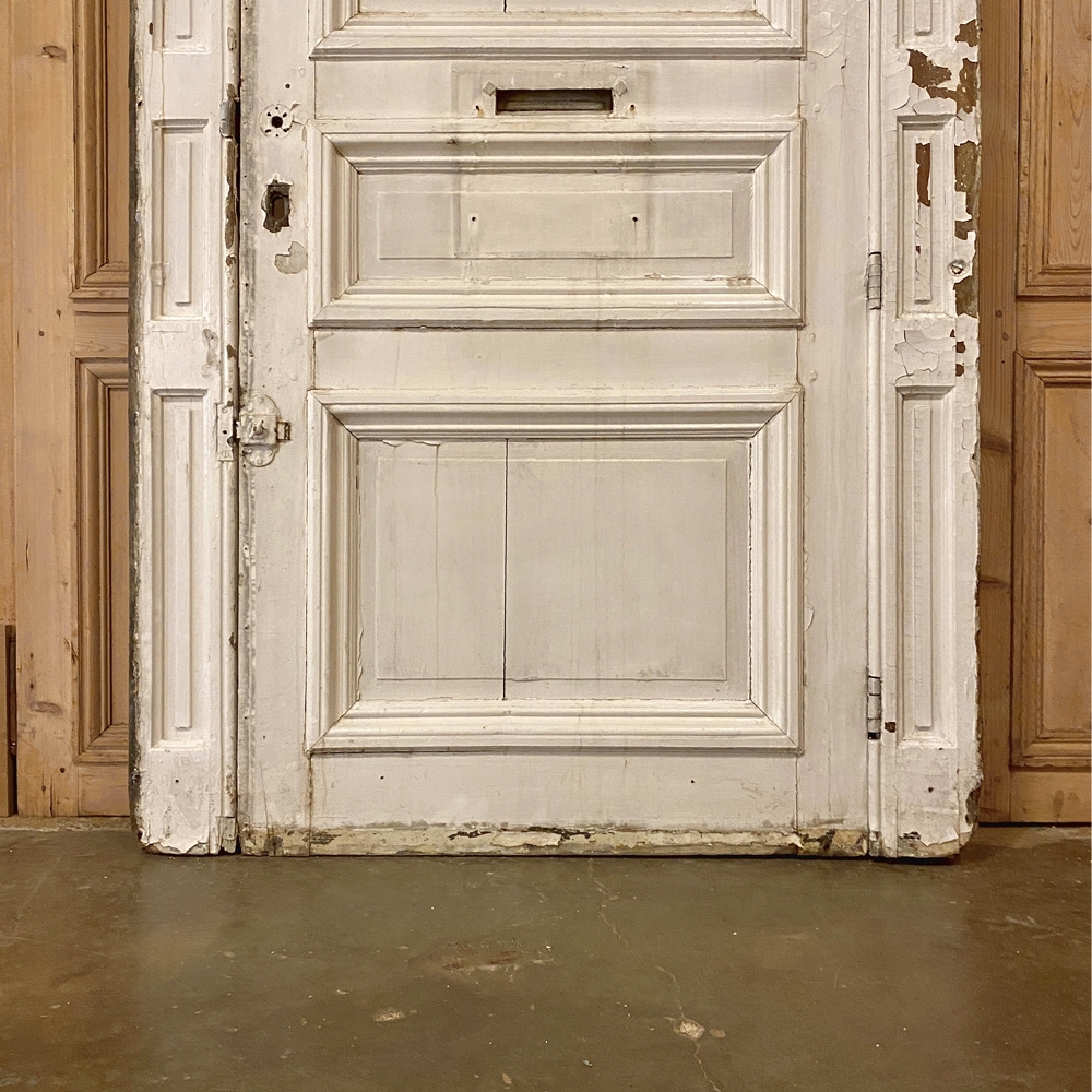 Sale19th Century Neoclassical Exterior Door with Transom & Jamb is a masterpiece of timeless architecture, poised to make your entryway unique and truly special! Amazing detail can be seen in the carved embellishments and fine molding detail, with pilasters on the jamb flanking the door itself, topped with a rounded dentil crown. The door panels feature raised blocks tucked into the corners surrounded by intricate molded detail, with another tier of rounded dentil appearing above the lowermost panel. A latticework motif appears on the smallest panel just below the letter slot. The original transom with glass panes survives, as does the original jamb should one need it! Painted a nice, pleasant white on the interior, but of course the finish on either side can be of your choosing!