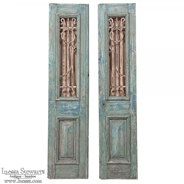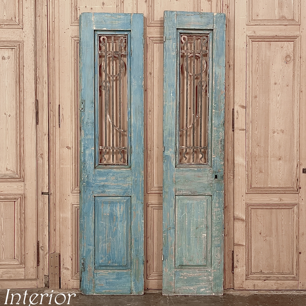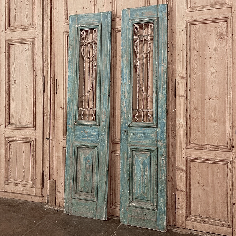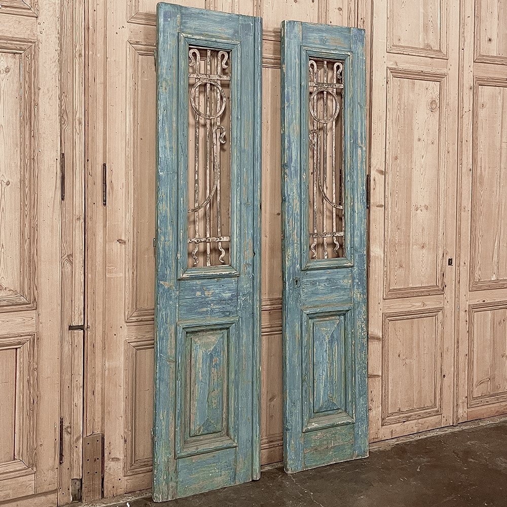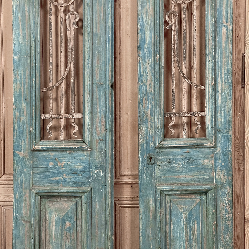 Pair 19th Century Exterior French Doors with Wrought Iron