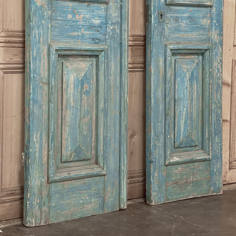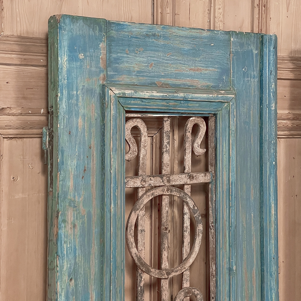 SalePair 19th Century Exterior French Doors with Wrought Iron will make the perfect choice to make an entryway unique, or to just hang on the wall as faux passageways, or just for decorative appeal! Hand-crafted from thick planks of oak, they were designed to defy aging, and feature subtle molded detail, plus an open upper tier filled with stylistic wrought iron.
