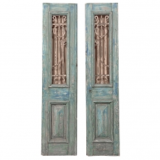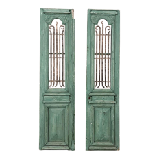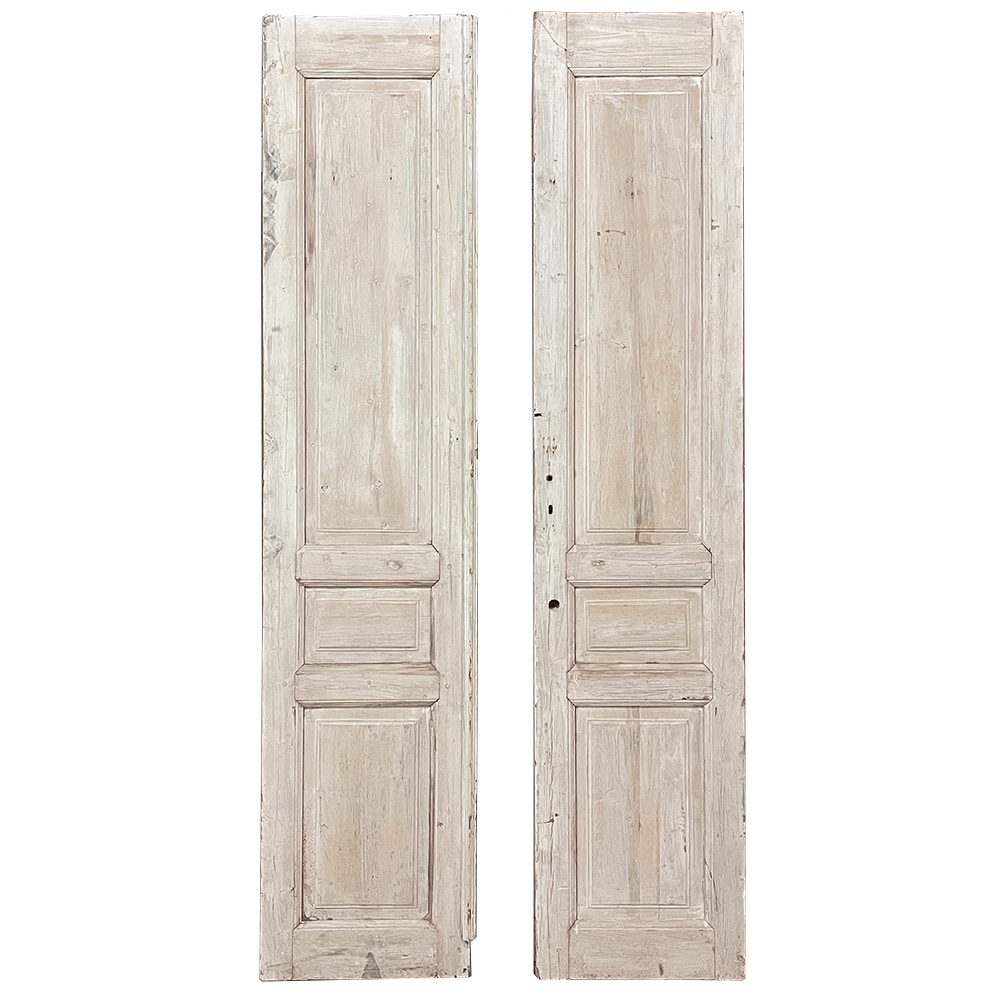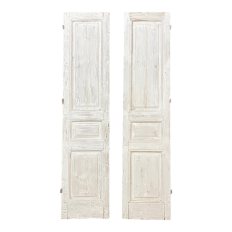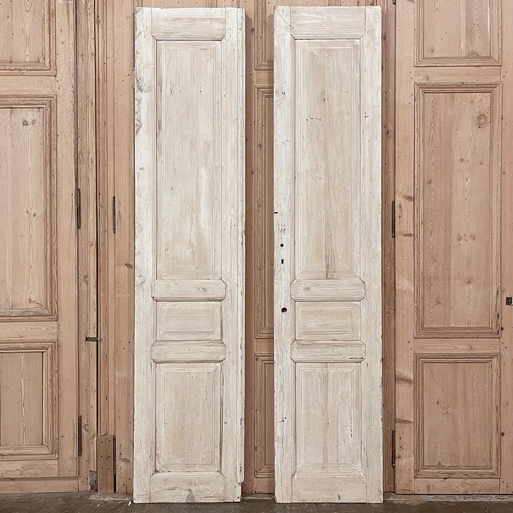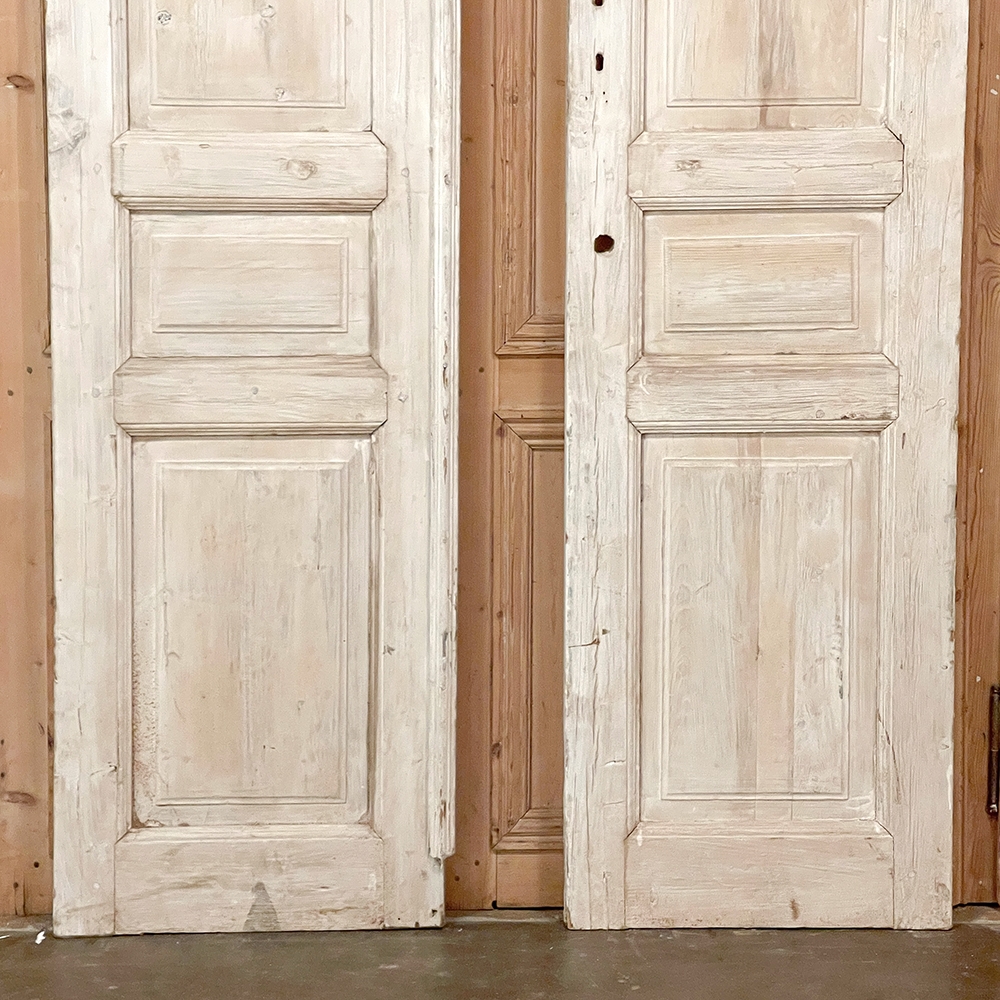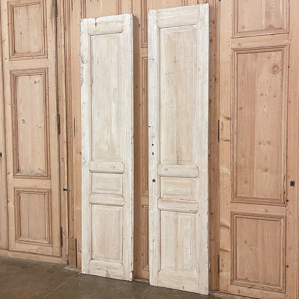 Pair 19th Century Interior French Doors will make a great addition to any room! Crafted by hand from solid pine, each features tailored raised & recessed panels for a tailored look, and sport a coat of paint perfect as a base for you to color coordinate with your room.