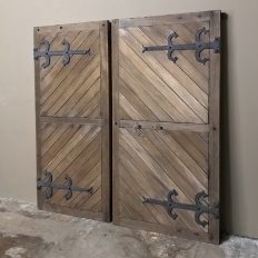 Pair 19th Century Solid Oak Shutters with Forged Iron Hinges