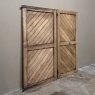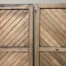 Pair 19th Century Solid Oak Shutters with Forged Iron Hinges are a decorative way to cover windows, or use as accents in their own right! Diagonally oriented planks ensured maximum strength to withstand the fiercest storm!  Use as a decorative exterior panel to cover up a bland wall, or as actual shutters for excellent weather protection.