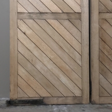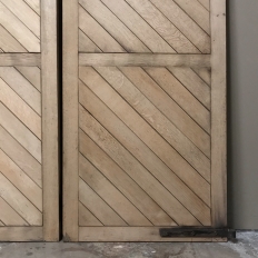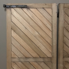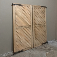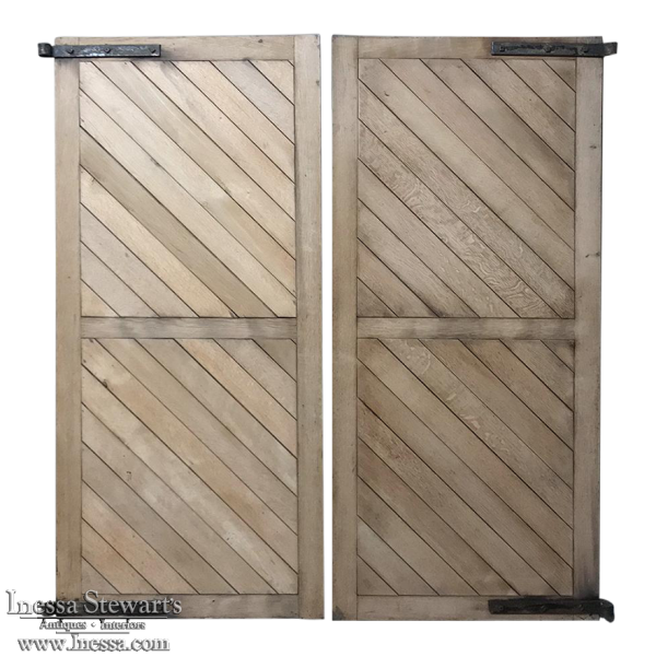 Pair 19th Century Solid Oak Shutters with Forged Iron Hinges are a decorative way to cover windows, or use as accents in their own right! Diagonally oriented planks ensured maximum strength to withstand the fiercest storm! Use as a decorative exterior panel to cover up a bland wall, or as actual shutters for excellent weather protection.