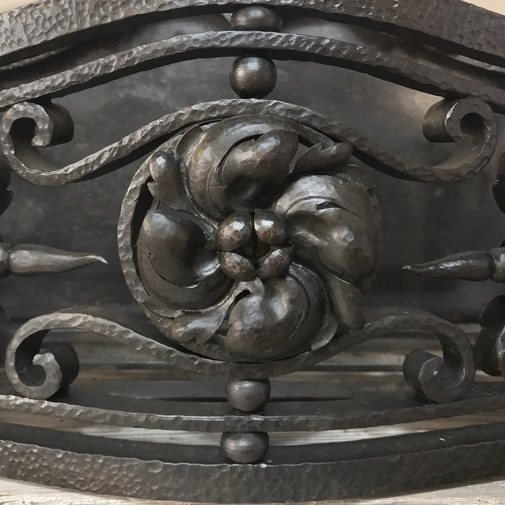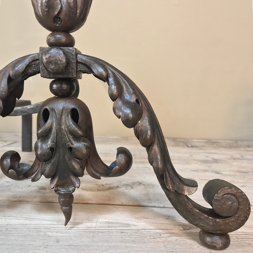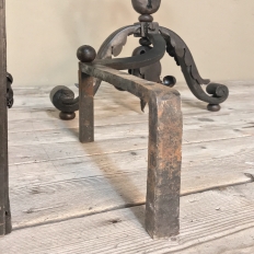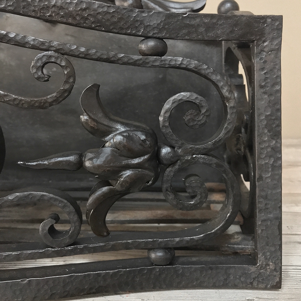 19th Century Wrought Iron Andiron & Firebox Set is a master work of the blacksmith's art, forged from red-hot iron to last several lifetimes! The intricate scrollwork and foliate motifs are the mark of a true master craftsman! The firebox is a completely separate unit so is optional to use. A rosette is centered on the firebox, which is enclosed on all sides and finished on the back panel with acanthus flourishes. Complementary flourishes comprise the andiron design for a beautiful effect.