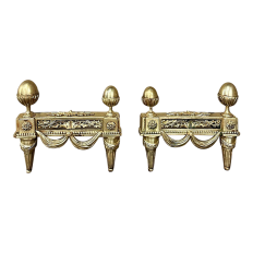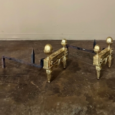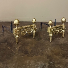 Pair 19th Century French Louis XVI Neoclassical Bronze Andirons