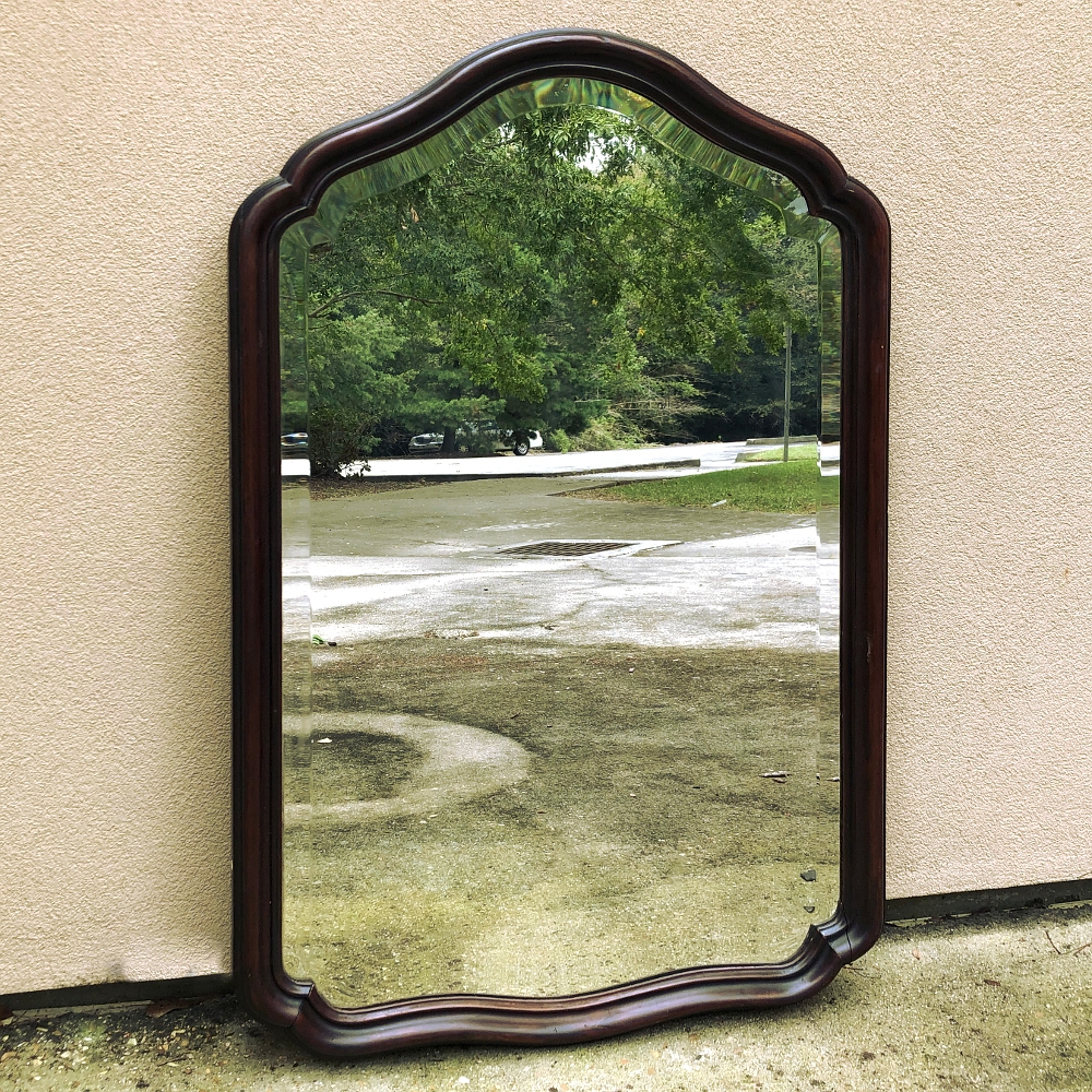 Antique Italian Beveled Wall Mirror is the perfect choice for a vanity, bathroom, powder room, or even a walk-in closet! Hand-crafted from solid wood with subtly formed contours, it has been fitted with a beveled mirror that precisely follows the contours of the framework.