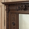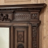 SaleAntique Italian Renaissance Mantel Mirror in Walnut will make a magnificent addition to your room, combining a masculine Old World look with the sheer natural beauty of European walnut, plus providing a reflection of your room all in one! The bold crown molding above the bonnet sets the framework, with Greek coin motif flanking the full relief centerpiece of a winged cherub atop a stylized shell and foliate spray. Rosettes appear over the side pilasters, which are topped with Doric capitals above foliates in bas relief. Two panels fitted with fine molding and centered with bold rosettes appear next to the pilasters, and provide a framework for the beveled mirror at the center. Ideal on a fireplace mantel or atop a suitable buffet or counter, its majestic presence will immediately catch everyone's eye.