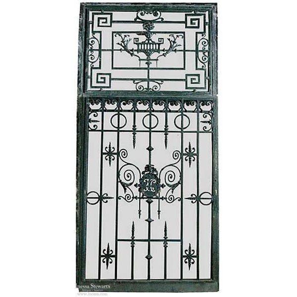 19th Century Paris Townhouse Hand Forged Wrought Iron Door and Frame were crafted on a grand scale over 100 years ago for a luxurious townhouse in Paris, this architectural antique was hand-forged and wrought iron door made for an impressive street side front door entrance. It was custom made by a master metalsmith during the Beaux Artes period, and features the initials of the original commissioner. An antique iton work of art in metal, the detail is astounding from every aspect.