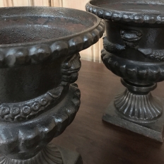 Pair 19th Century Neoclassical Cast Iron Garden Urns
