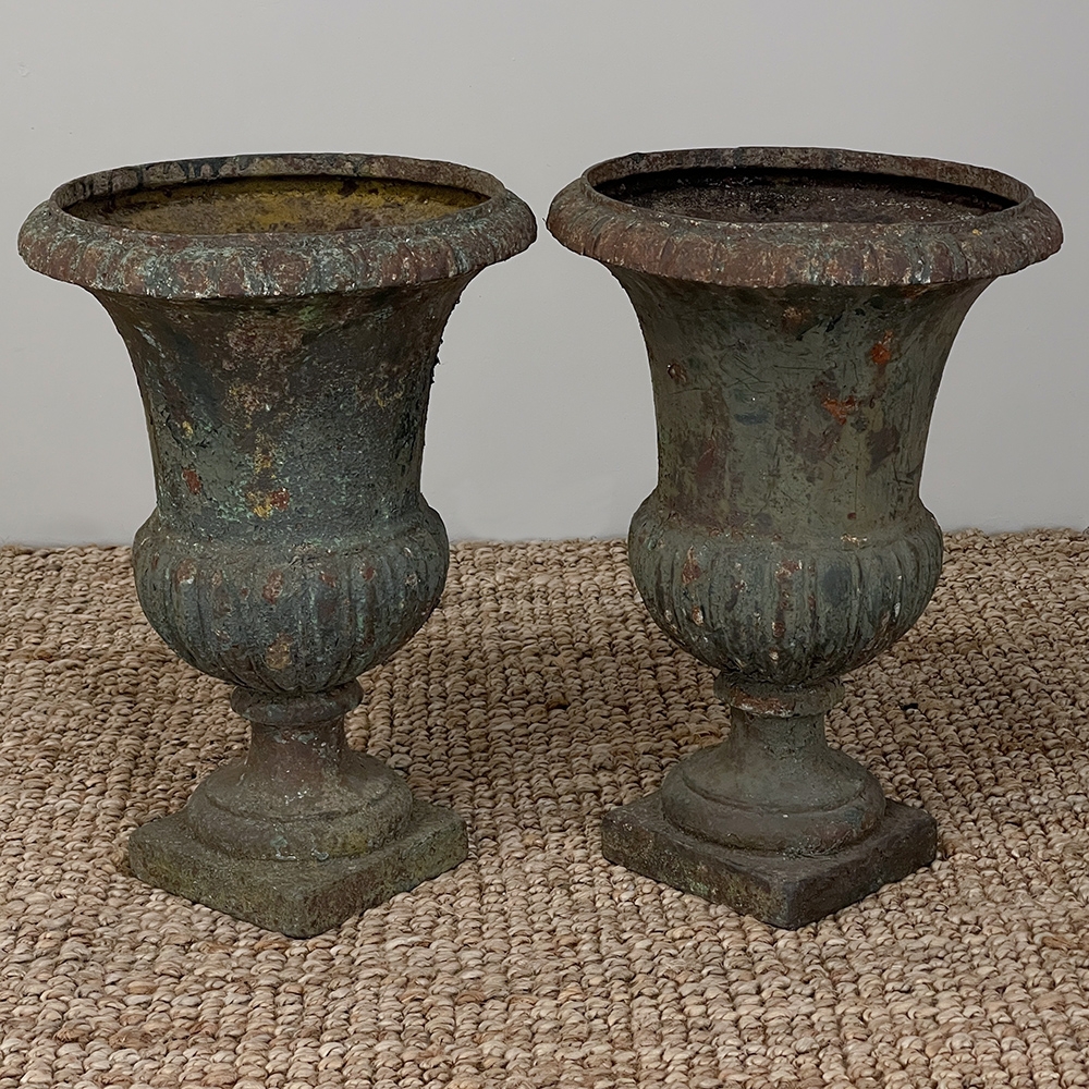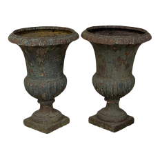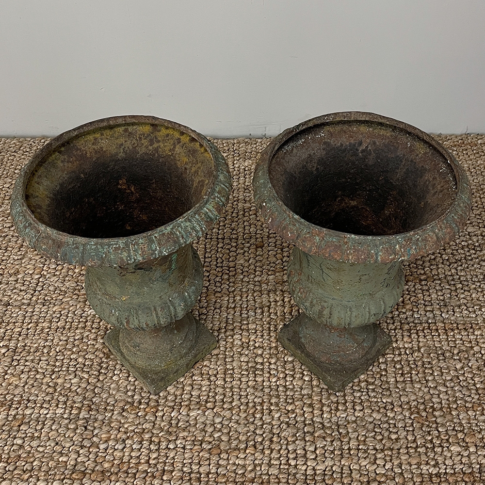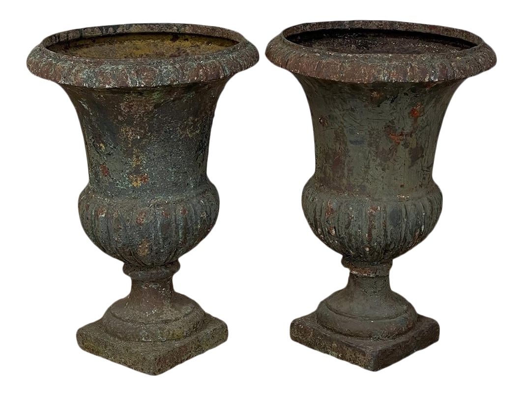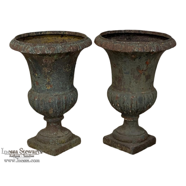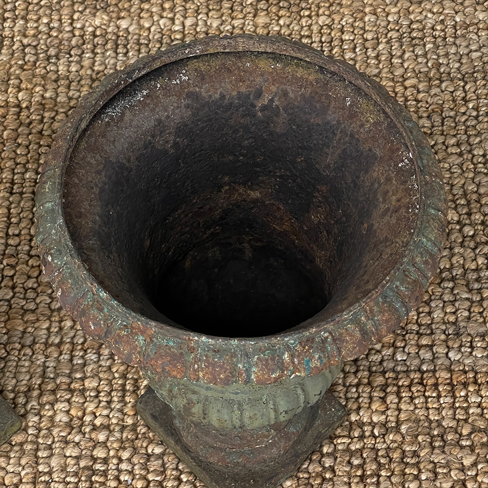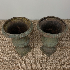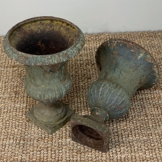 Pair 19th Century French Neoclassical Cast Iron Garden Vases ~ Jardinieres