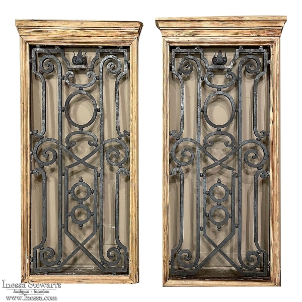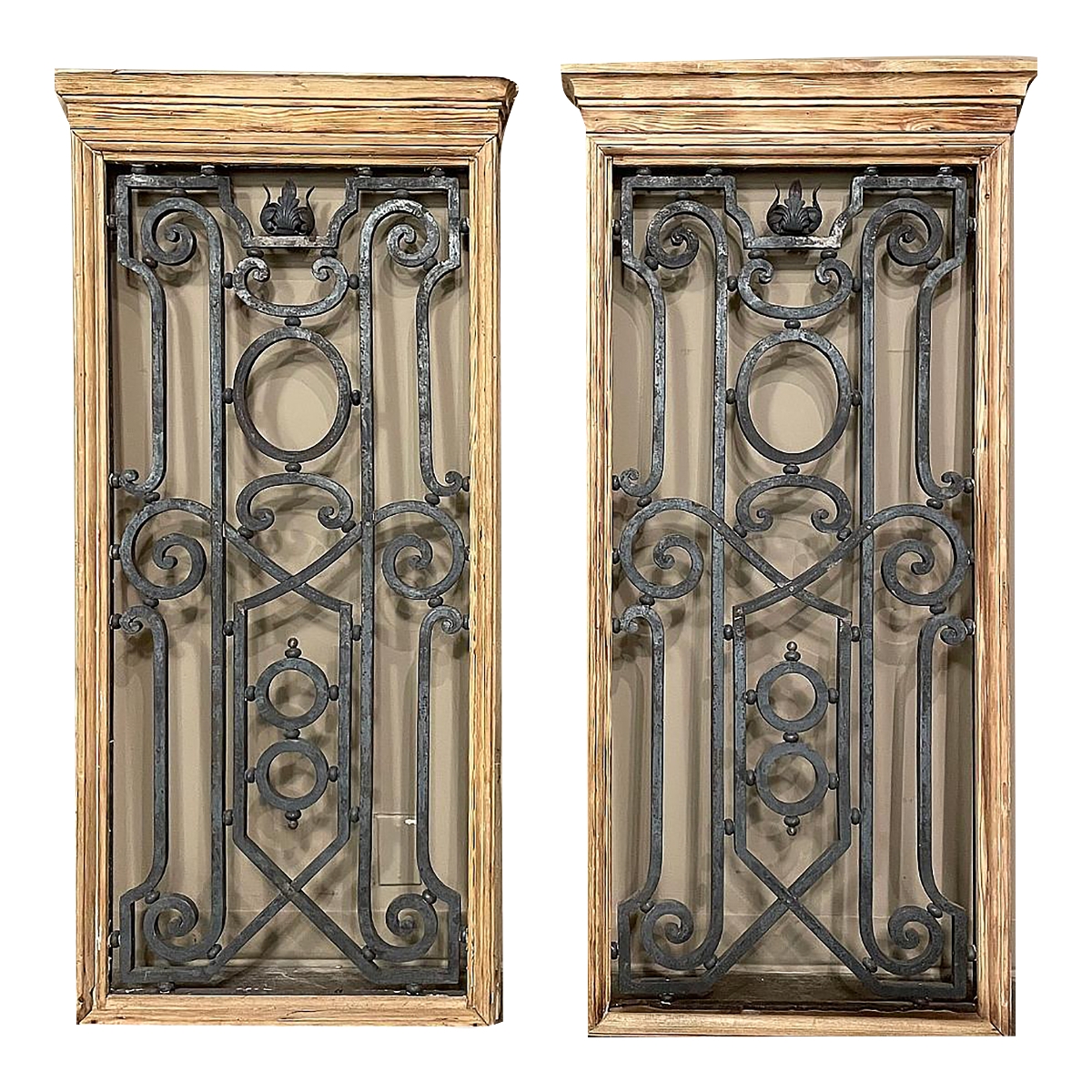 Pair Mid-19th Century French Hand-Forged Wrought Iron Framed Panels