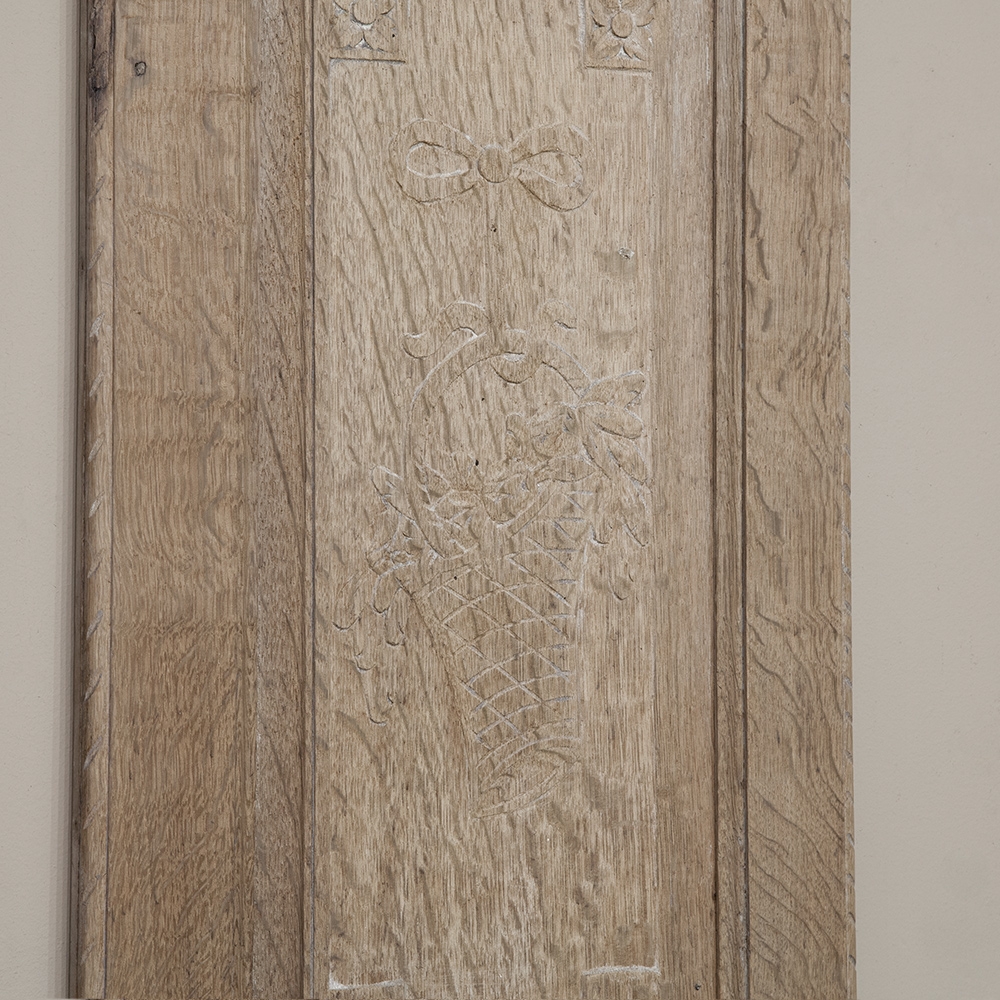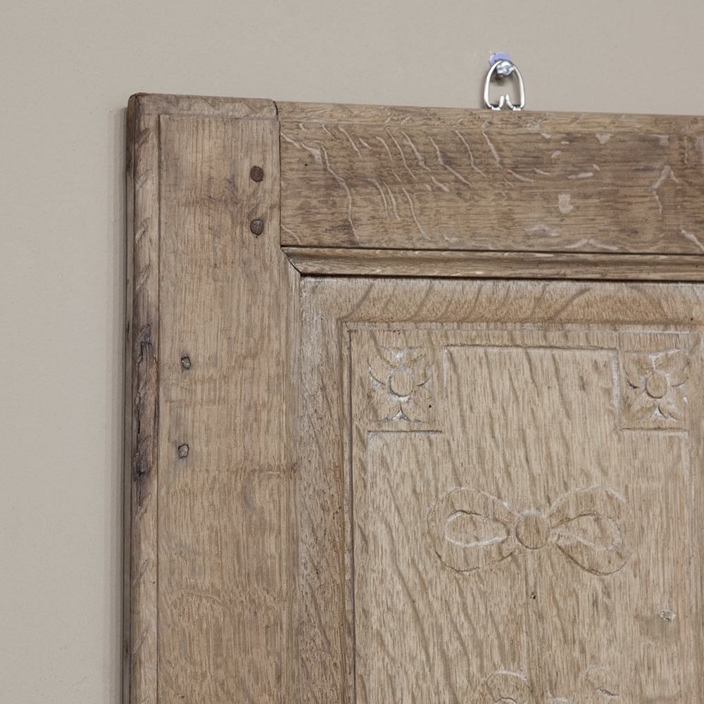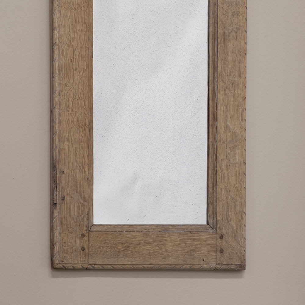 19th Century French Louis XVI Panel Trumeau was originally a panel decoration for a fine manoir, and has been salvaged to adorn your home for decades more to come! This Antique Louis XVI Panel Trumeau makes the perfect choice for a slender niche, space between windows or a powder or guest bath. Note the chamfered raised panels and the pegged mortise and tenon joints, as well as the subtle hand-carved embellishments. The stripped oak finish makes it work very well with today's casual decors!
