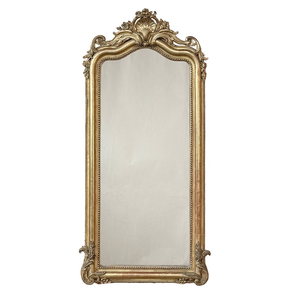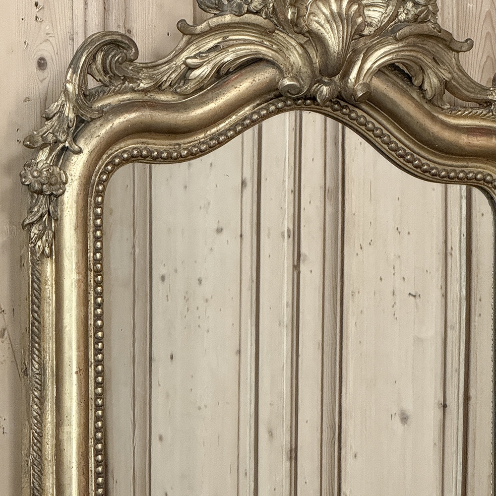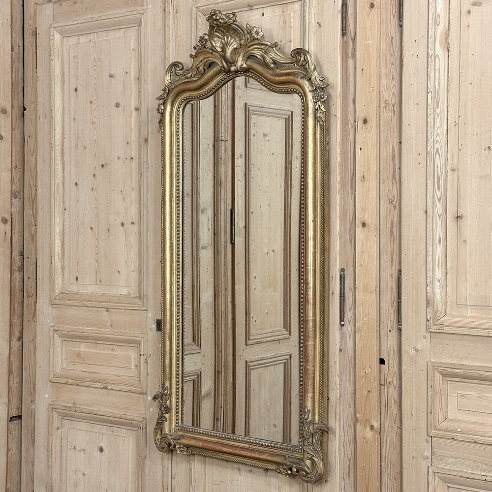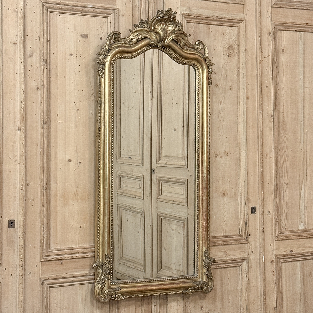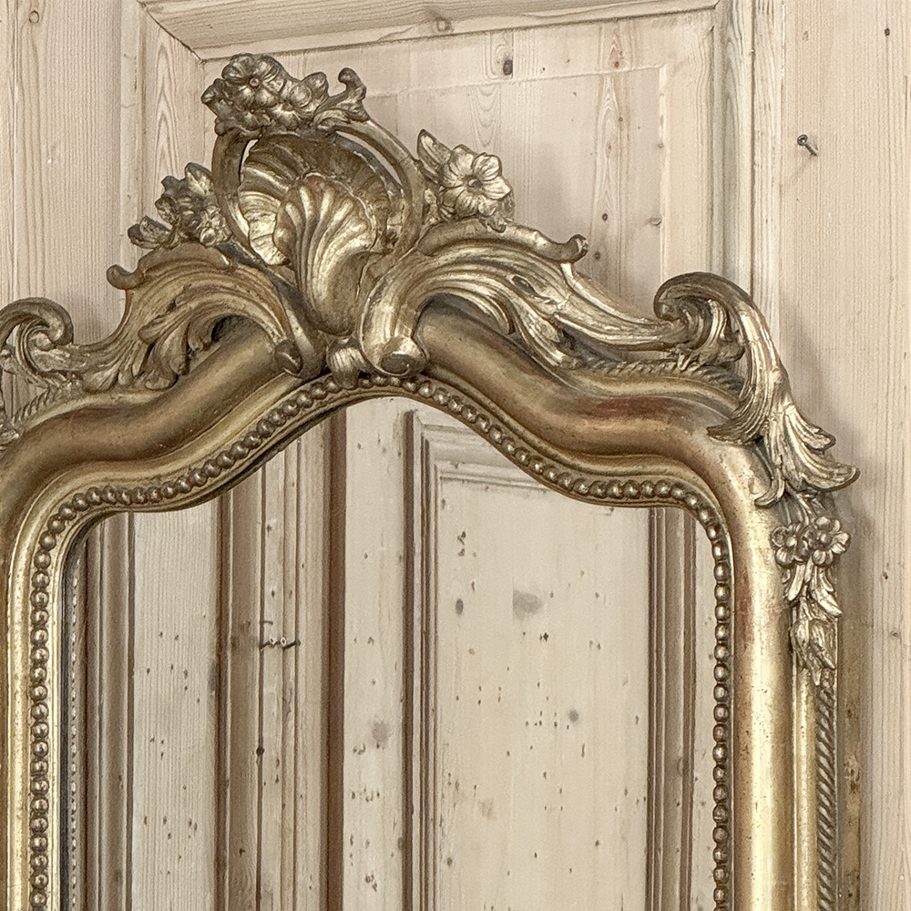 19th Century French Napoleon III Period Gilded Mirror will make a splendid addition to any room! The proportions are somewhat unusual, tall and narrow, making it ideal for special spaces and niches. The gently arched crown was a departure from the preceding Louis Philippe style, and during the reign of Napoleon III a profusion of timeless ornamentation was added to the genre, such as the shell with floral and acanthus foliates cascading down to each shoulder. Upturned foliates reach up from the bottom as if greeting the ornamentation above, with beading surrounding the actual glass of the mirror itself. Perfect for hanging by itself, or atop a console or other surface, it is a very versatile design that will add elegance anywhere it is placed.